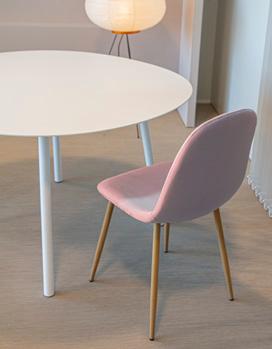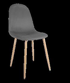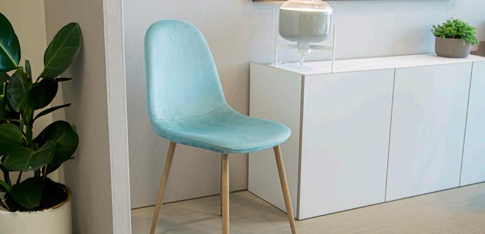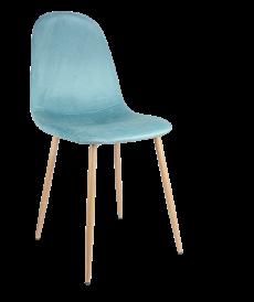 Descubra as nossas cadeiras com duas opções de acabamento: poliéster resistente com pernas de ferro preto para um toque moderno, ou veludo macio com pernas de ferro cor de madeira para um estilo mais acolhedor. Discover our chairs available in two finishes: resistant polyester with black steel legs for a modern touch, or soft velvet with wood effect steel legs for cozy style.