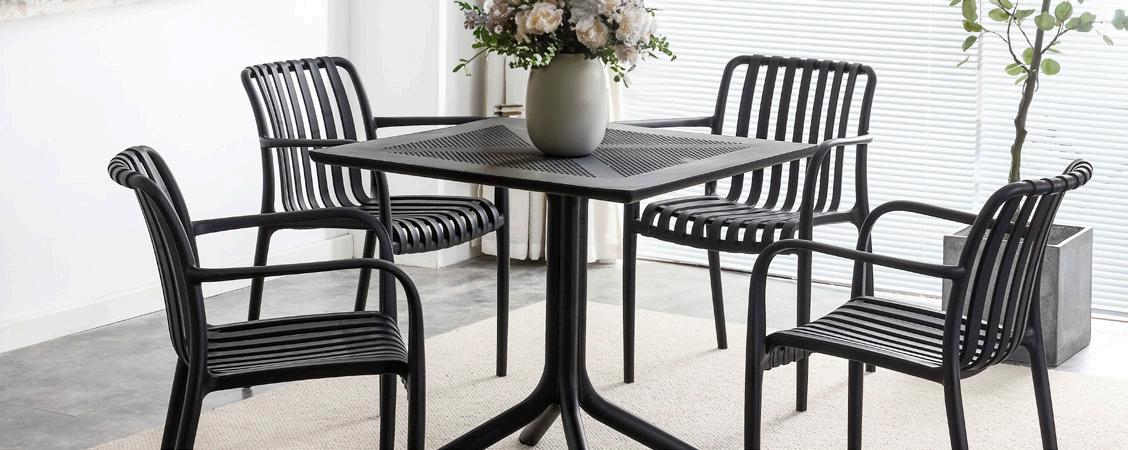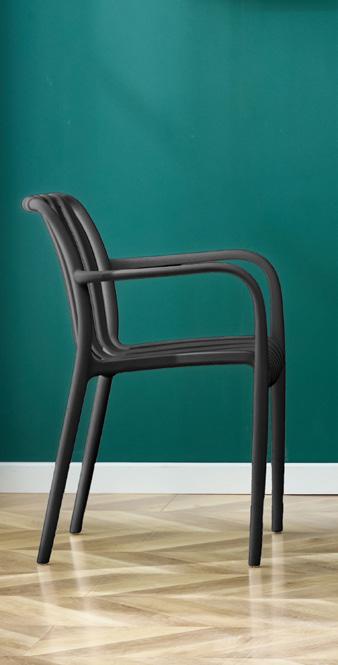 Linha de mobiliário para interior e exterior, leve e empilhável. Mesas, cadeiras e bancos concebidos para criar ambientes funcionais e acolhedores, mas também para suportar o uso intensivo. Disponíveis numa grande variedade de cores e estilos.