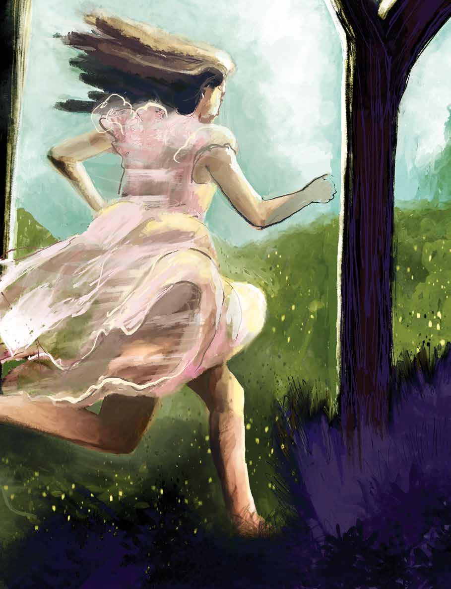 dentro do vale dos mortos. E tem como sair de lá? Ninguém nunca voltou para contar. De pavor, corri para longe daquela árvore anciã. Os pés tão apressados deixaram para trás os chinelos. Corri a ponto de escutar a minha respiração, cheguei nos braços dos meus pais e senti um pouco o que é se sentir em casa. Não lembro se tomei água ou fui deitar. Mas sei que o homem voltou para o chalé — estávamos em um hotel —, talvez por remorso ou porque a árvore tenha lhe dito algo. Contou alguma história que meus pais acreditaram.