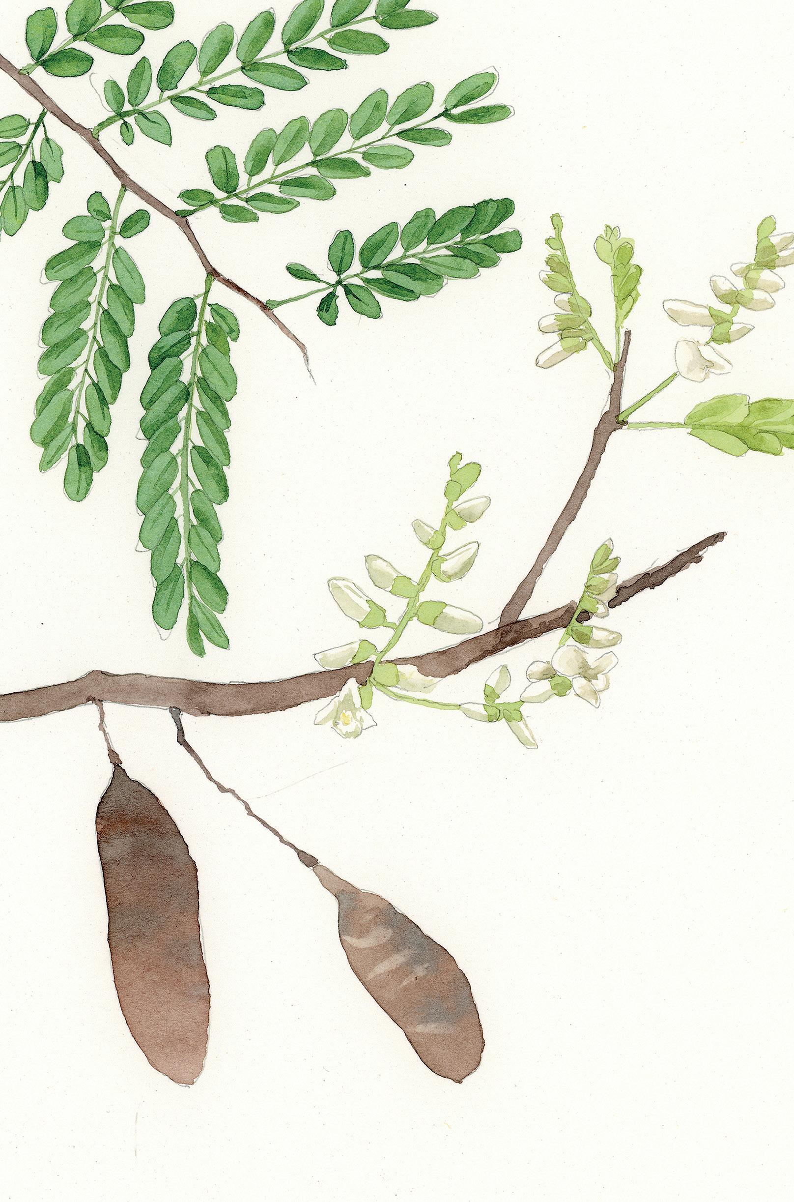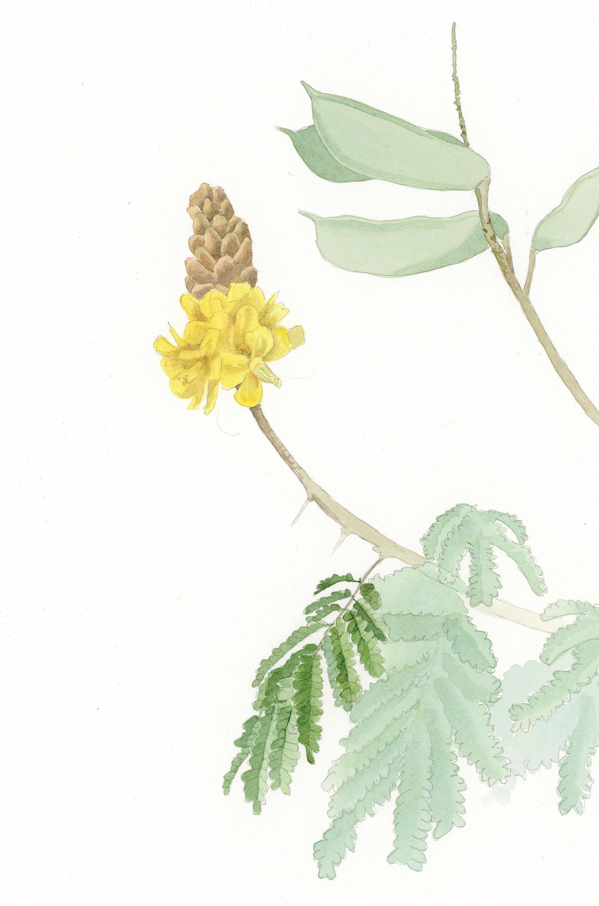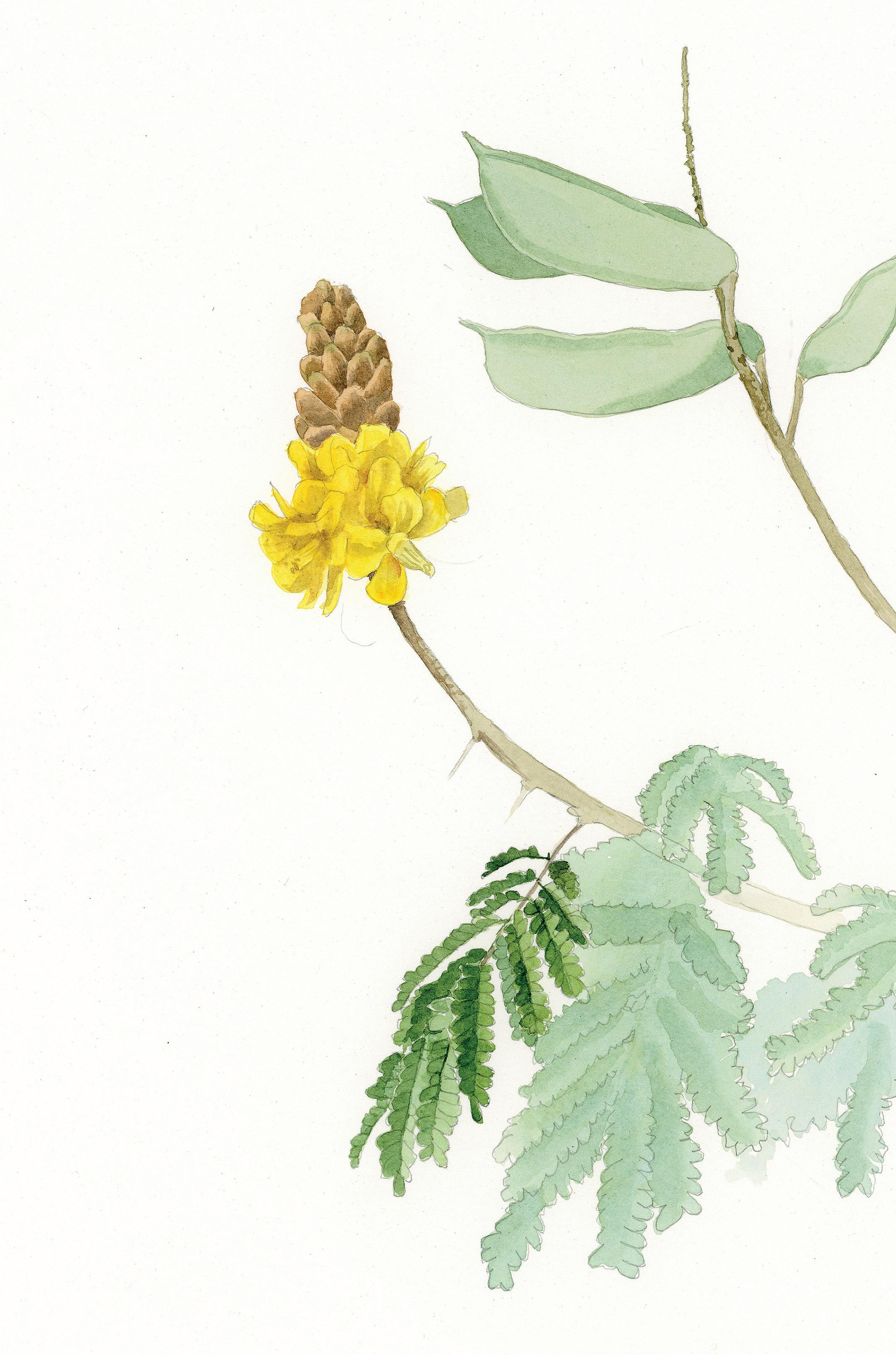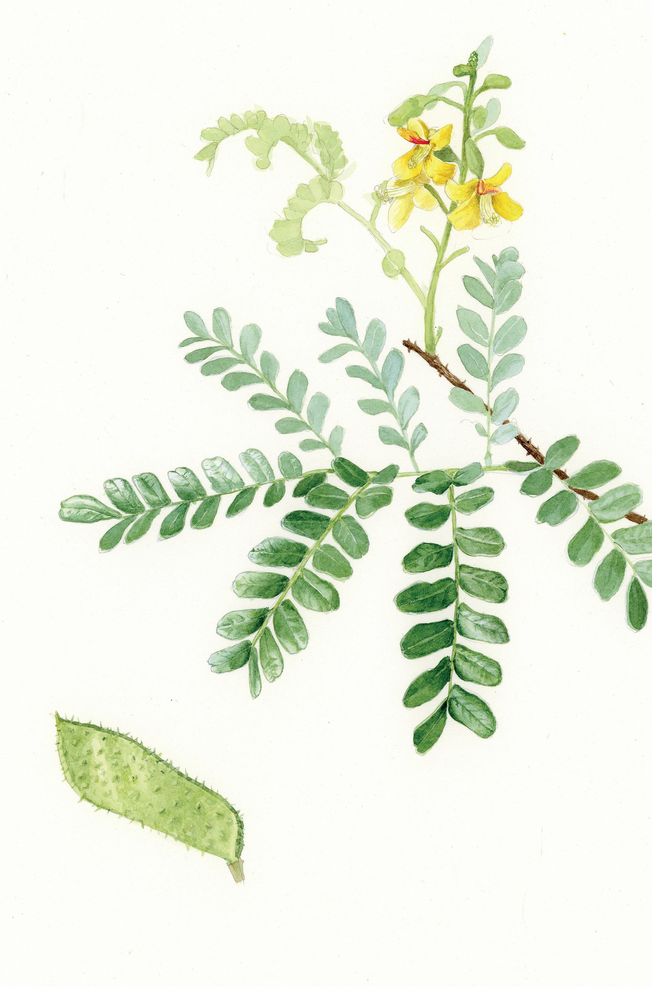 As flores são pompons branco-amarelados e os frutos são vagens achatadas com sementes muito leves de cor castanhoclaro. As raízes contêm saponinas – substância que se caracteriza por formar espuma e que pode funcionar como antioxidante e anti-inflamatório.