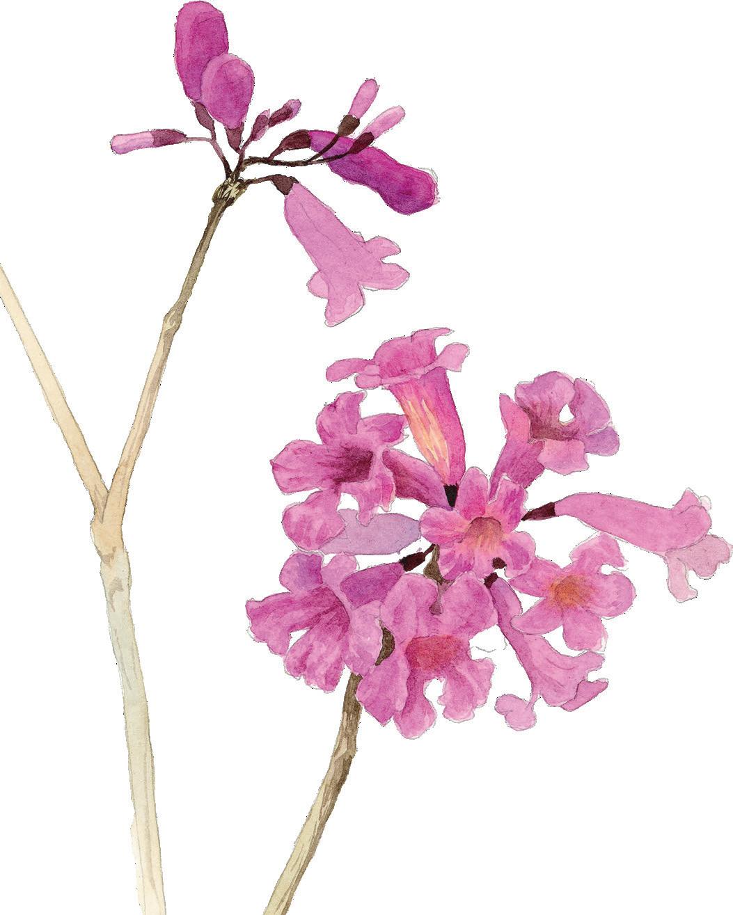 As flores são violeta e aparecem com a troca de folhas. Se vistas de cima, o efeito das cores das folhas novas e das flores é algo encantador. Este fenômeno pode ser apreciado no início da primavera.