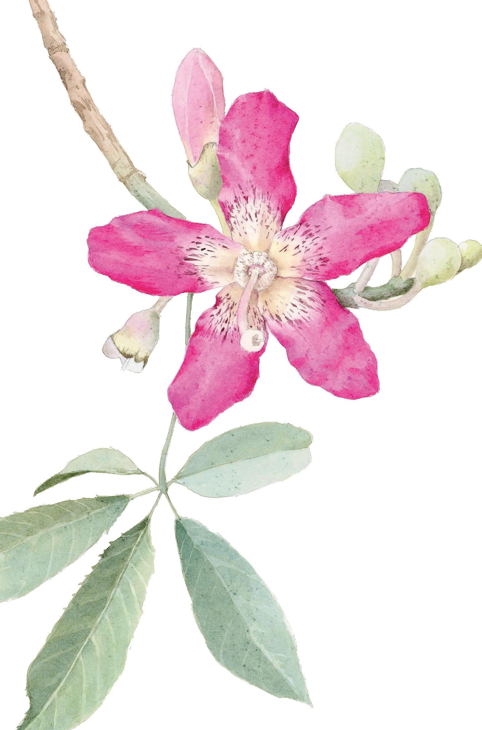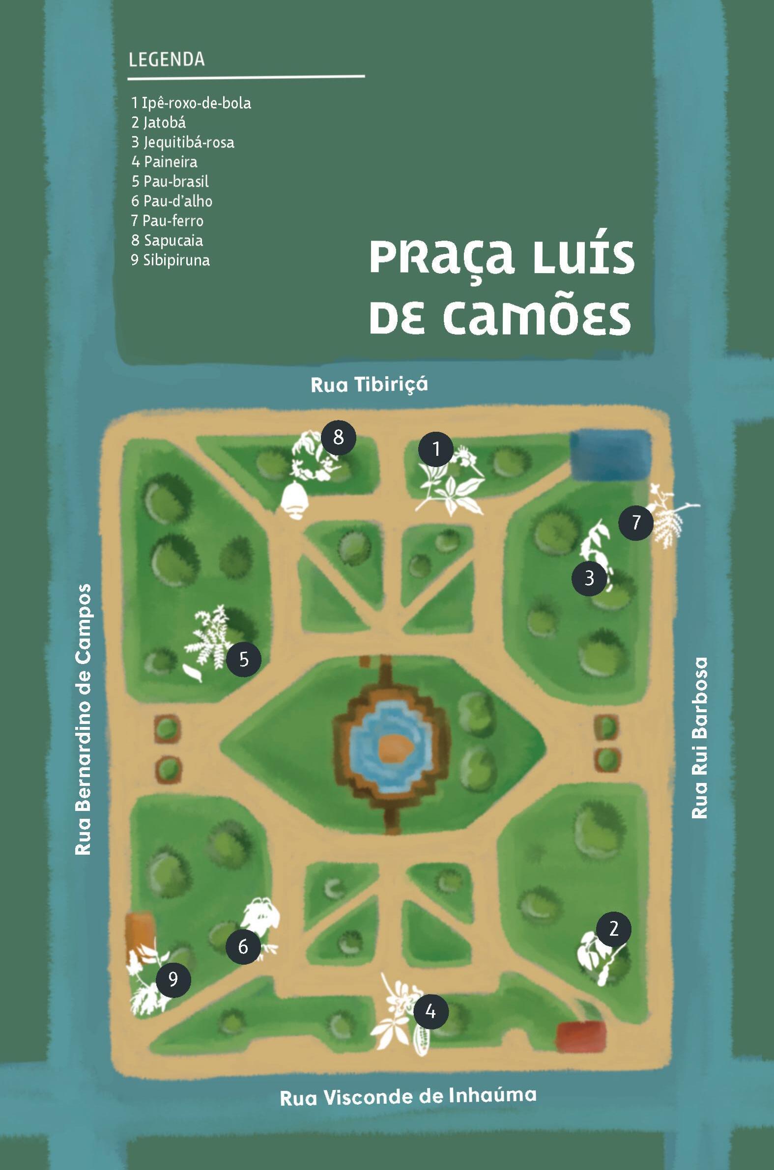 Em 1995, Ribeirão Preto sediou a 46ª edição do Congresso Nacional de Botânica na Faculdade de Filosofia, Ciências e Letras da Universidade de São Paulo (FFLCH/USP). O símbolo que figurava nas peças de divulgação era um ramo florido e frutos da paineira-rosa – ilustração de Hiroe Sasaki. Os organizadores não poderiam ter feito escolha melhor, já que a espécie é encontrada em todo interior paulista. As paineiras-rosa florescem todo mês de março e permanecem assim até maio. Mas é em abril que se nota o esplendor verdee-rosa na paisagem. A Páscoa coincide com as paineiras no auge de sua beleza. Os frutos surgem logo após a floração, mas somente em agosto e setembro, quando os ventos são mais intensos no Centro-Sul do país, é que se abrirão para dispersar suas sementes envolvidas pelas painas. As painas – fibras brancas – já foram muito utilizadas em colchões e travesseiros. Acredita-se que hoje seja pouco usada para esse fim. A madeira é leve e pode ser usada na confecção de canoas, gamelas e cepas de tamanco. O tronco quando jovem possui acúleos – estrutura semelhante a espinhos – que desaparecem com o seu amadurecimento. A paineira-rosa é uma espécie nativa do bioma Mata Atlântica e é na Praça Luís de Camões que encontramos grandes exemplares dessa árvore.