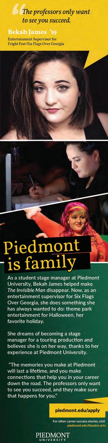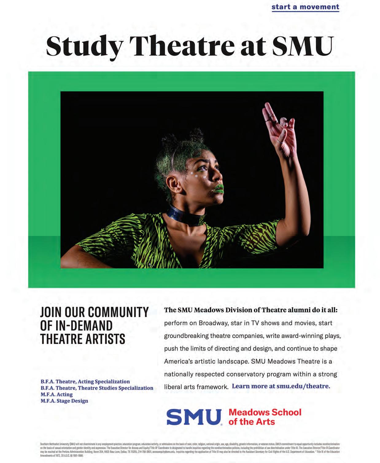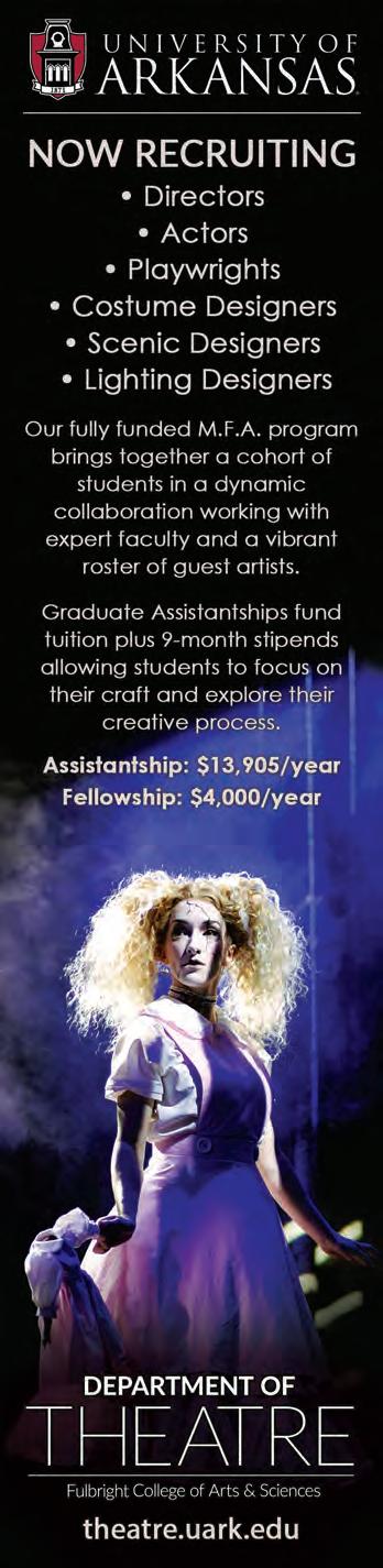 Non-Profit Org. US Postage Paid Auto Greensboro, NC Permit No. 744 Southeastern Theatre Conference 5710 W. Gate City Blvd., Suite K, Box 186 Greensboro, NC 27407 www.setc.org Stella Adler Studio of Acting 65 Broadway Floor 2 New York, NY 10006 StellaAdler.com 212-689-0087 classes@stellaadler.com Art of Acting Studio 1017 N Orange Drive Los Angeles, CA 90038 artofactingstudio.com 323-601-5310 info@artofactingstudio.com I WANT TO CHANGE THE WORLD. I WANT TO HEAL. I WANT TO BE A DOCTOR. PROFESSIONAL CONSERVATORY Apply by January 6, 2023 An Affordable MFA Alternative 2023 SUMMER INTENSIVES ACTOR WORKSHOPS The Stella Adler Studio of Acting/Art of Acting Studio is a 501(c)3 not-for-profit organization and is accredited by the National Association of Schools of Theatre. Actor!