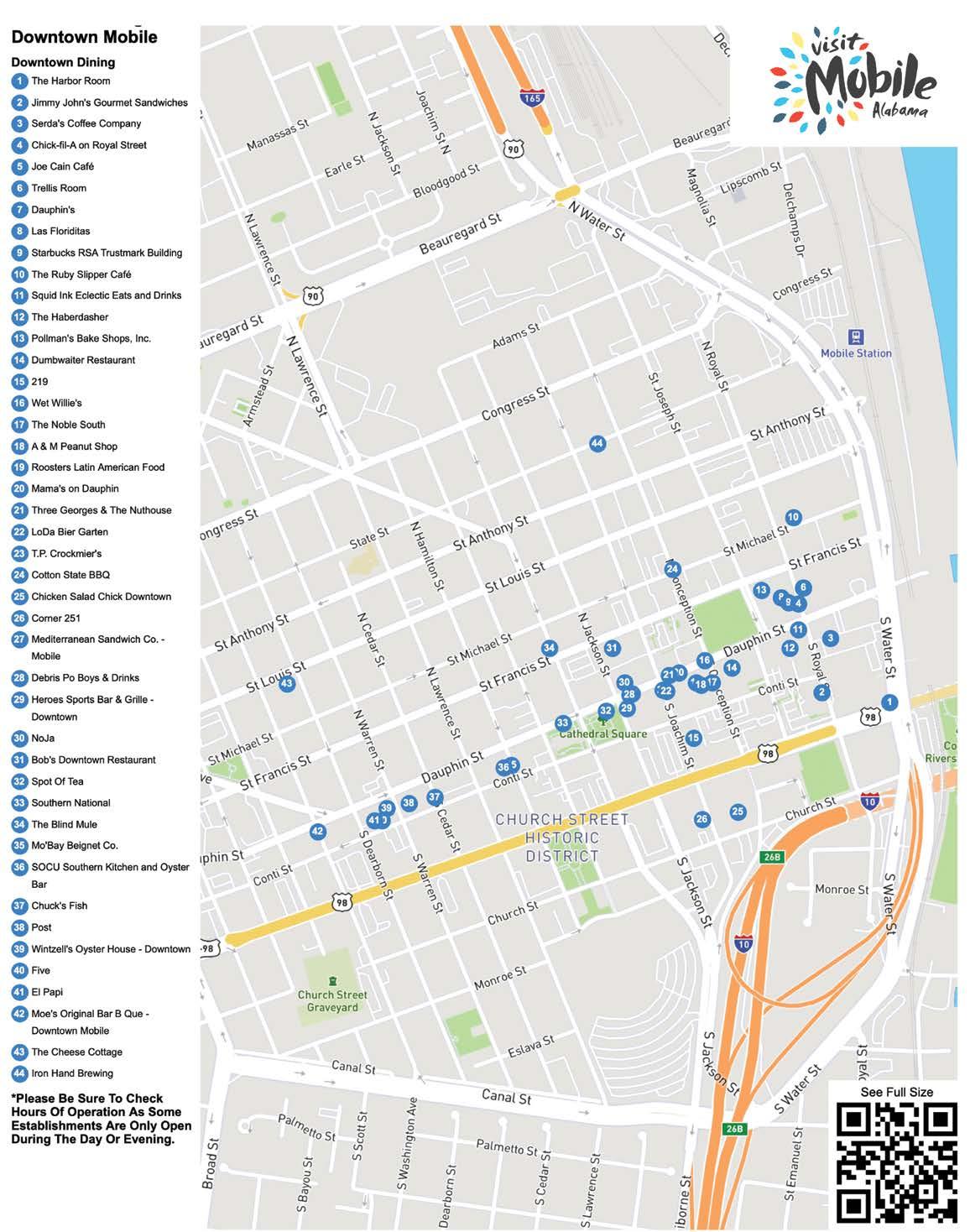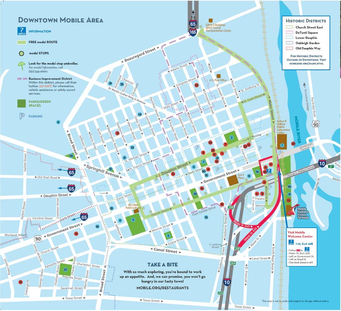 Located at the Registration Desk . Visit this booth for general convention information, schedule changes, directions, and our lost and found . Learn more about restaurants, places of interest and activities from mobile .org . Sponsored by Visit Mobile .