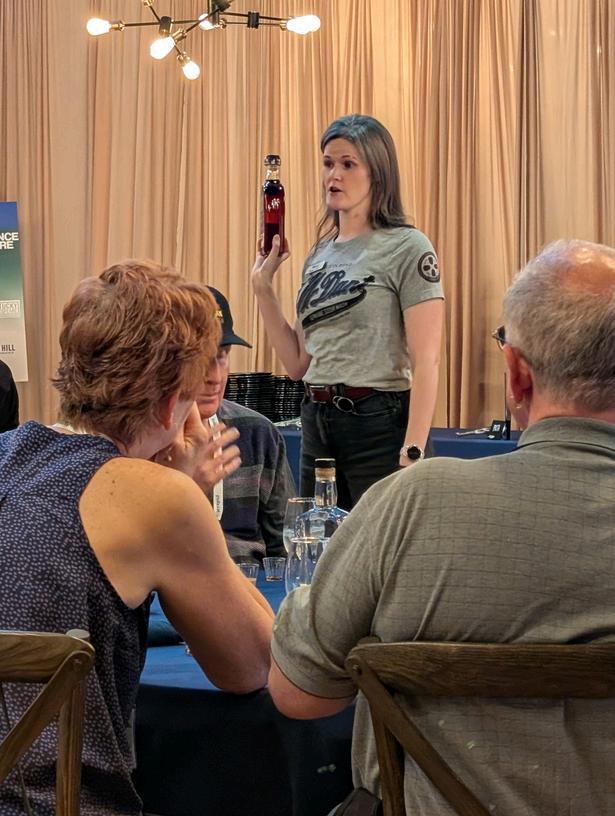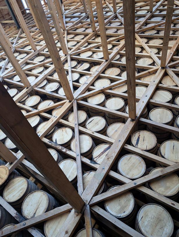 Mary Slinger-Carreer, of Heaven Hill Distillery Lead a tour and tasting Picture on the left are caskets aging in a rack house