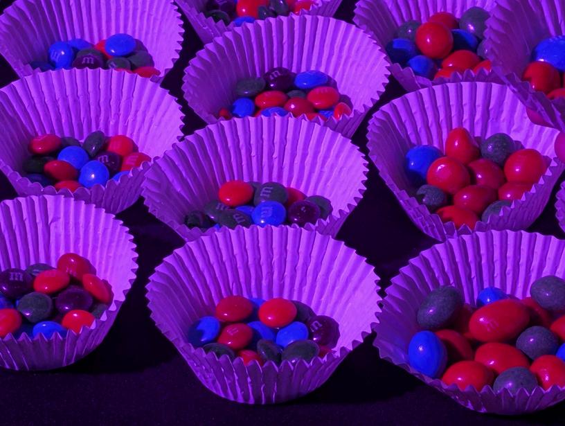 Rick McConnell (above), of XS Lighting & Sound, spoke on the ways light changes our perception of colors on stage using these M&Ms as an example