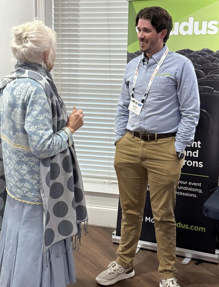 Stephanie Delmore chats ticketing with Ludus rep Robbie Steiner