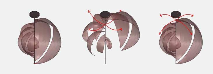T his second desing variation was inspired by a case study called the “Diffusion Choir”. The design functions by simply using a motor to create the movement of expanding and shrinking.