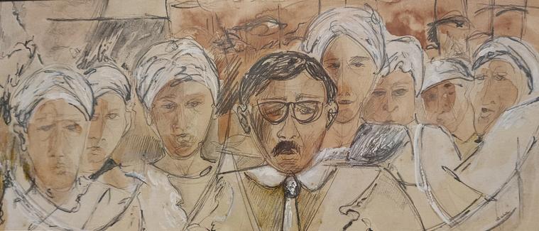 Acrílica e carvão sobre papelão 36 x 52 cm com a moldura
