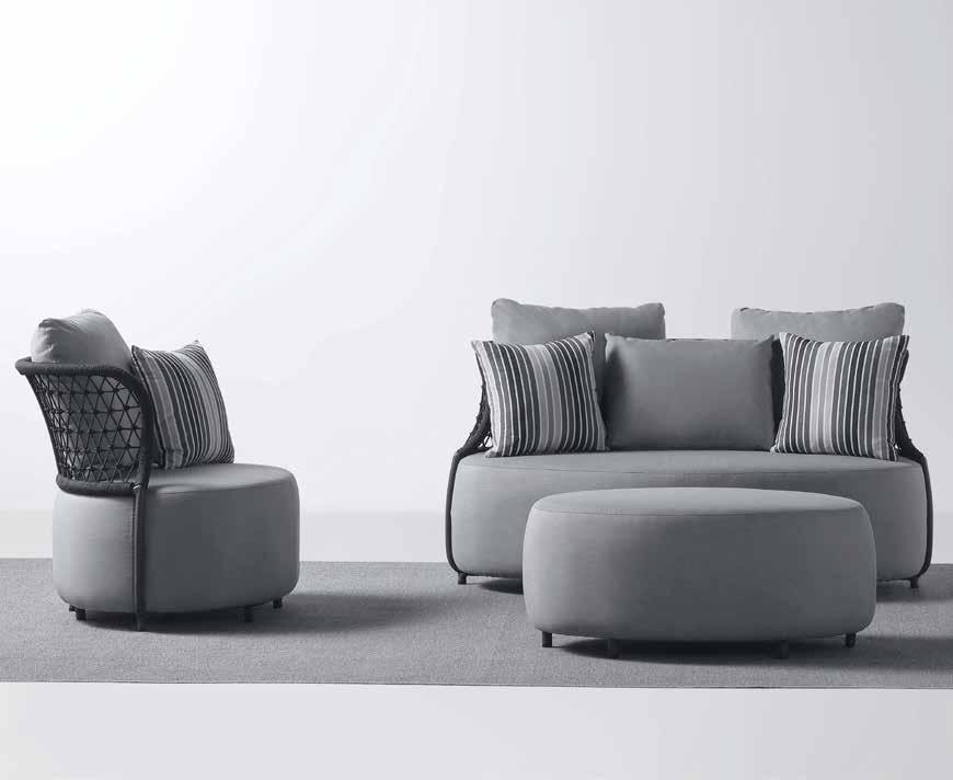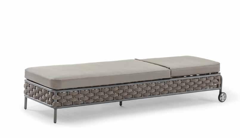 PERTESSUTOESTERNIGRIGIO ART. A1823 NICE SOFÀ STRUTTURA: ALLUMINIO VERNICIATO ANTRACITE E CORDA POLIESTERE INTRECCIATA SEDILI: GOMMA IDROFUGA DESCRIZIONE TESSUTOBROWNACRILICO POLTRONA ART. 1823/3 L80 x P79 H 70 cm € 1.000,00 INT539TL TAVOLINO RETTANGOLARE ART. 1823/5 L110 x P60 H 42 cm € 349,00 INT187TL DIVANO 3 POSTI ART. 1823/4 L165 x P79 H 70 cm € 1.500,00 INT809TL LETTINO ART. 1823/12 L200 x P70 H 37 cm € 1.159,00 INT624TL GARDEN 237236