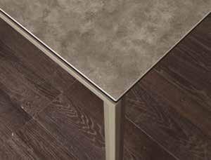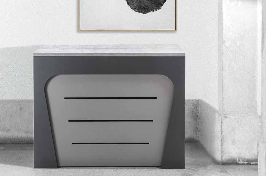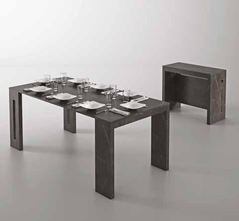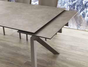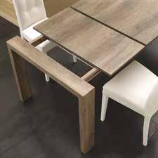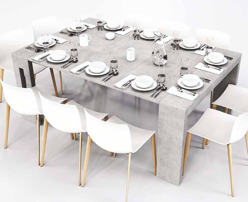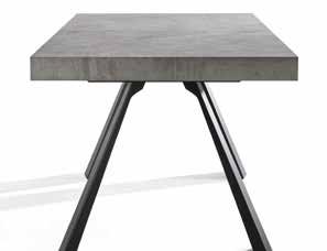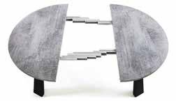 ART. A730 STRUTTURA: NOBILITATO CLEAF PIANO: NOBILITATO CLEAF NON NECESSITA DI SOSTEGNO CENTRALE DIMENSIONI NOBILITATO CLEAF corten effetto ruggine NOBILITATO CLEAF cemento 90x44 cm aperta 90x186 3 allunghe 8 posti € 1.035,00 INT538TL € 940,00 INT538TL 120x44 cm aperta 120x186 3 allunghe 10 posti € 1.166,00 INT606TL CARRELLI/CONSOLLE 109108
