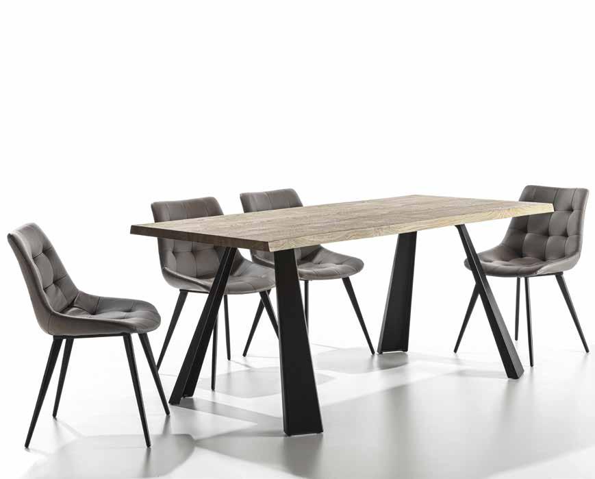 ART. A704ME STRUTTURA: METALLO VERNICIATO NERO OPACO PIANO: FRASSINO MASSELLO SPAZZOLATO TINTO NATURALE / BORDO CORTECCIA SP. 4 CM DIMENSIONI PREZZI 200x100 cm € 2.029,00 INT1039TL 250x100 cm € 2.422,00 INT1240TL 300x100 cm € 2.691,00 INT1377TL ART. A704VE STRUTTURA: VETRO SPESSORE 15 MM PIANO: FRASSINO MASSELLO SPAZZOLATO TINTO NATURALE / BORDO CORTECCIA SP. 4 CM DIMENSIONI PREZZI 200x100 cm € 2.212,00 INT1132TL 250x100 cm € 2.605,00 INT1333TL 300x100 cm € 2.874,00 INT1470TL SEDIA ART. A289 ( vedi pag. 134 ) LEGNOTAVOLI 6968