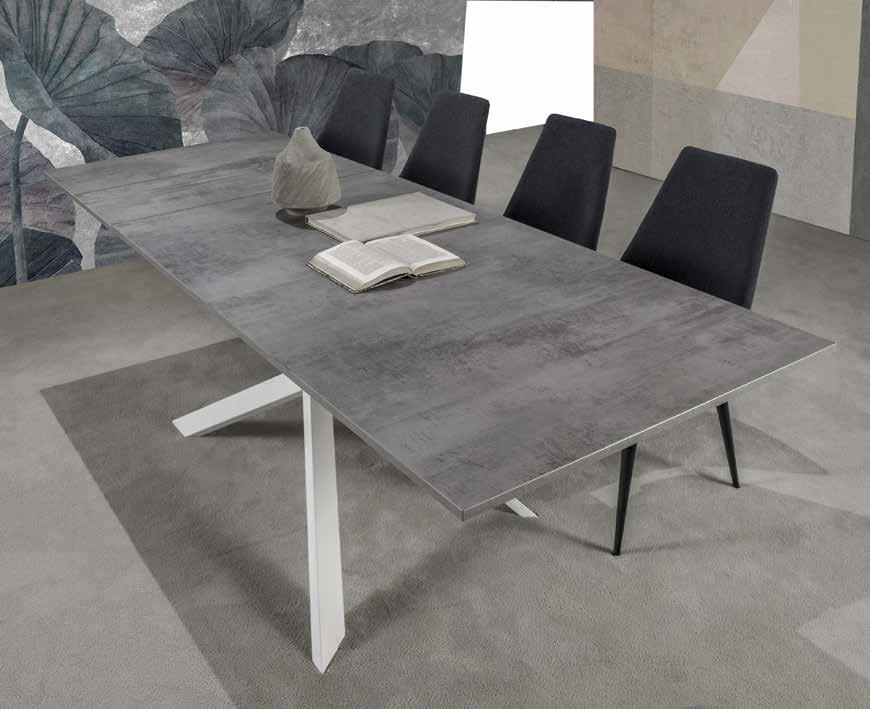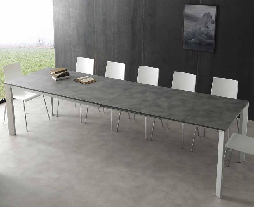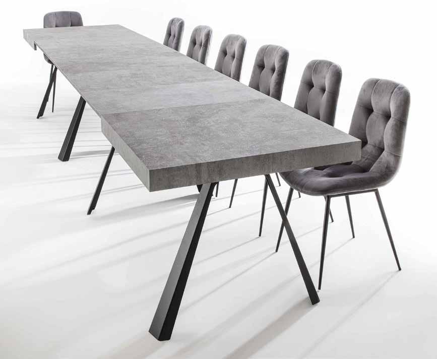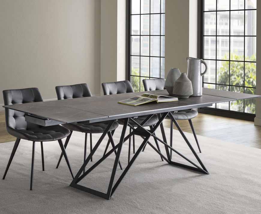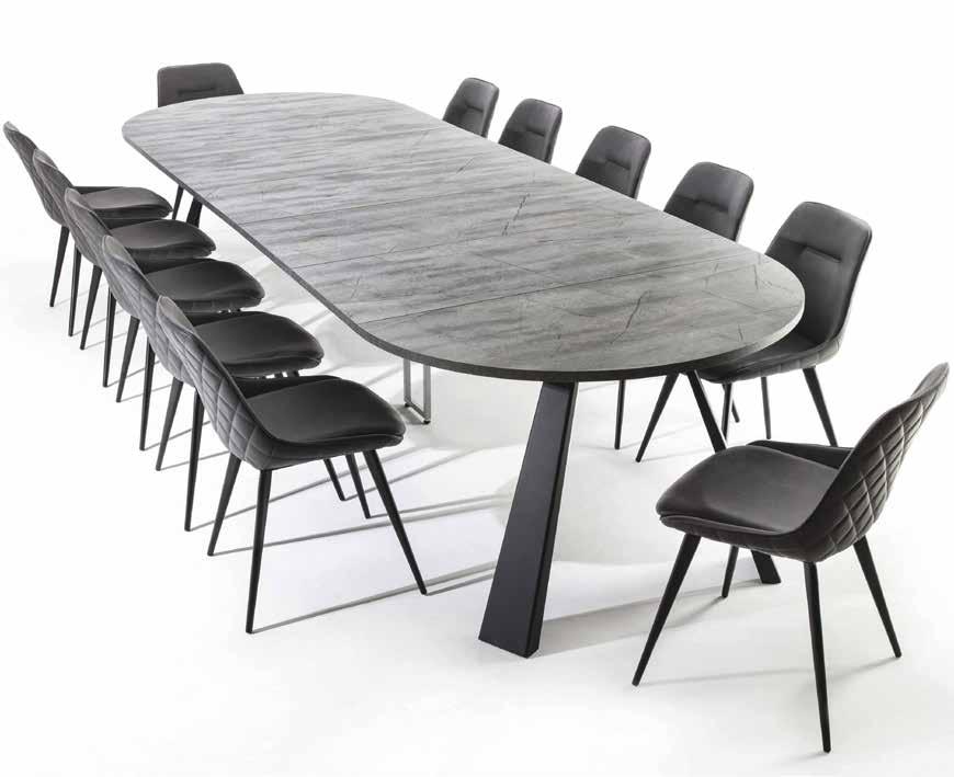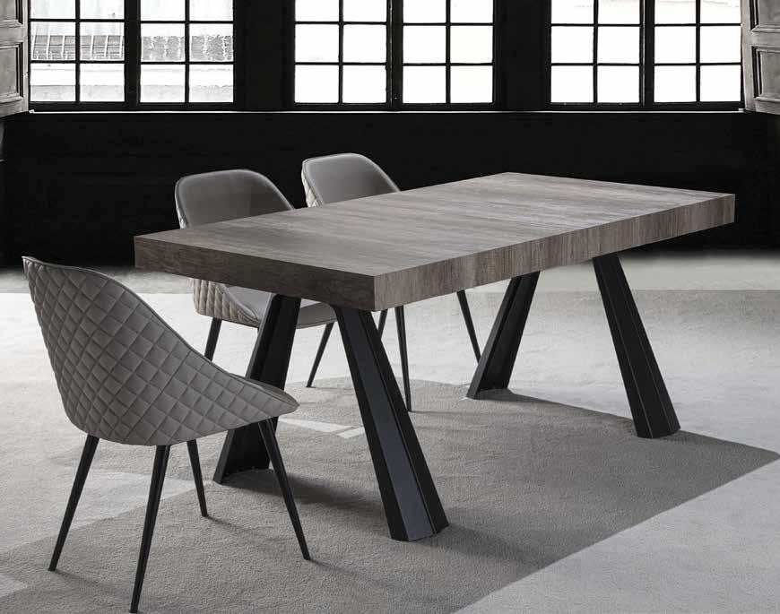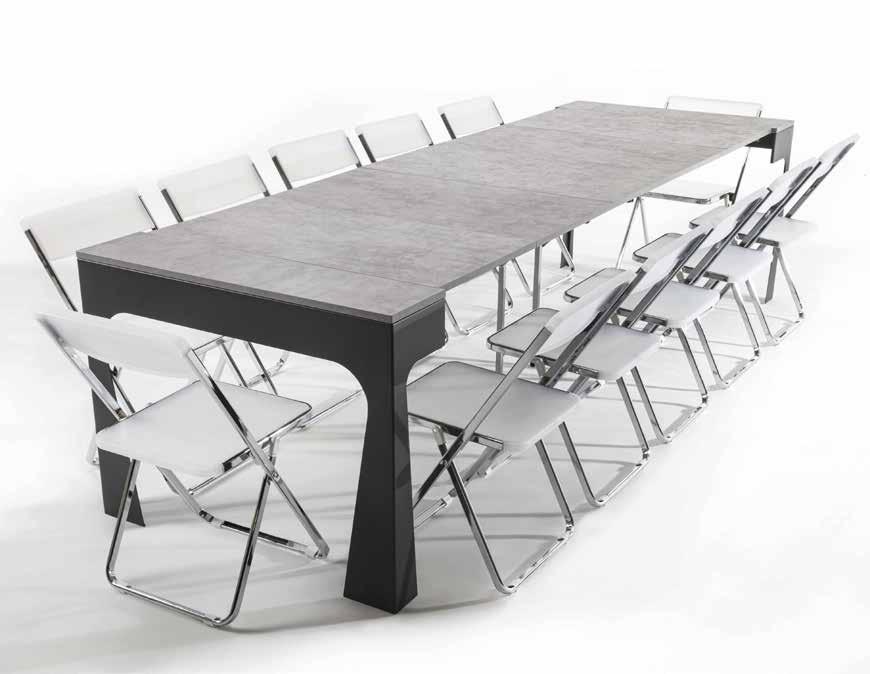 ART. A697 STRUTTURA: METALLO VERNICIATE NERE PIANO: NOBILITATO DIMENSIONI cementoNOBILITATO/roverenodato 160X90 cm aperto 360 cm H 75 cm (14 posti stretti 4 allunghe) € 1.882,00 INT978TL 200x100 cm aperto 500 cm H 75 cm (18 posti - 6 allunghe) € 1.949,00 INT1013TL SEDIA ART. A204 ( vedi pag. 125 ) LAMINATOTAVOLI 2524