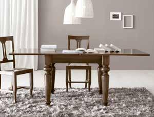 ART. B840 STRUTTURA: IMPIALLACCIATO PIANO: IMPIALLACCIATO / RADDOPPIABILE DIMENSIONI noce / castagno scuro 140x80 / aperto 140x160 € 778,00 INT335TL Abbinabile a sedia tinta NORA NOCE vedi pag. 199 ART. B841 STRUTTURA: IMPIALLACCIATO PIANO: IMPIALLACCIATO / CON 1 ALLUNGA DIMENSIONI noce scuro 150x80 / aperto 210x80 cm € 778,00 INT335TL abbinabile a sedia TINTA EVA NOCE vedi pag. 199 LEGNOTAVOLI 7574