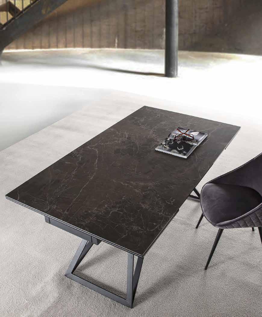 ART. A602 STRUTTURA: ACCIAIO VERNICIATO NERO PIANO: PIANO VETRO CERAMICA (SPESSORE 3 mm CERAMICA + 8 VETRO mm) DIMENSIONI VETRO CERAMICA grafite brown 160X90 cm aperto 240 cm H 76 cm € 2.130,00 INT1149TL SEDIA ART. A253/4G ( vedi pag. 128 ) SEDIA ART. A210/N vedi pag. 127 ) VETRO/GRESTAVOLI 103102