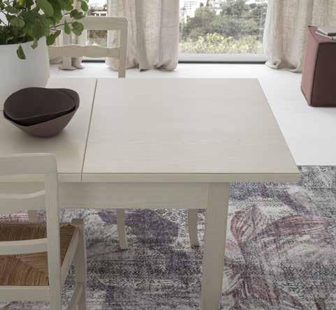 ART. B570 VEGA STRUTTURA: IMPIALLACCIATO FRASSINO SPAZZOLATO, GAMBE QUADRE PIANO: IMPIALLACCIATO SP. 2 CM FRASSINO SPAZZOLATO CON 1 ALLUNGA DA 50 CM FINITURE DECAPÉ: BIANCO - ECRÙ PERLA - GESSO GHIACCIO - ORIONE DIMENSIONI PREZZI 140x85 aperto 190x85 cm € 1.023,00 INT472TL 160x90 aperto 210x90 cm € 1.118,00 INT521TL SEDIA ART. B900 IN FRASSINO SPAZZOLATO OPACO € 172,00 INT080TL A RICHIESTA RAL / NCS + 30% DECAPÈ ORIONEDECAPÈ PERLADECAPÈ ECRÙDECAPÈ BIANCO DECAPÈ ANTRACITE SEDIA CONSIGLIATA ART. B900 VEDI PAG. 196 SEDIA ART. A011 ( vedi pag. 164 ) LEGNOTAVOLI 6564