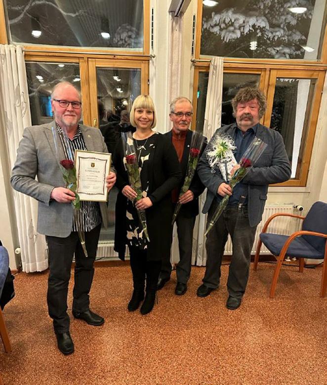 Avaintekopalkintoa vastaanottamassa Hannu Merilehto, Anne Rajaniemi, Pentti Gallen ja Kyösti Terentjeff.