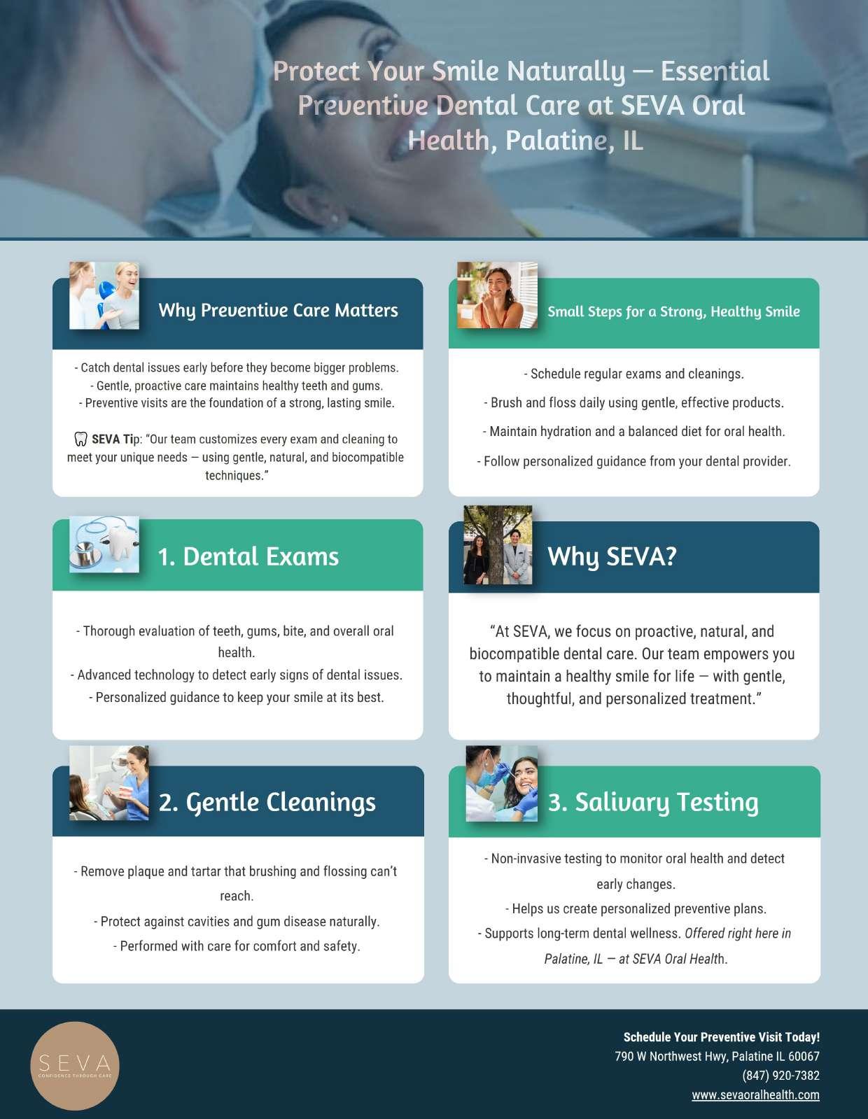 Explore easy, natural ways to keep your smile healthy with preventive dental care at Seva Oral Health in Palatine, IL. Learn how daily habits, early checkups, and gentle professional care can stop problems before they start. A quick guide to protecting your teeth and boosting your long-term oral wellness.