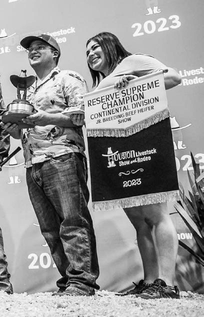 The following year, they were able to fulfill their goal of an Agribition supreme. GVR Miss Peppa 21J with calf, Black Gold/Greenwood Peppa 7L was named the Canadian Western Agribition Supreme Champion Female. Toby credits the 2023 supreme title as his favorite show memory to date. Black Gold Simmentals has also been recognized as Premier Breeder and Premier Exhibitor in the Simmental shows across multiple fall majors; a true testament to their dedication to their show strings and breeding program.