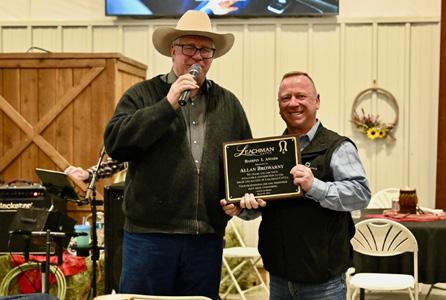 On March 23, 2025, Allan Browarny recieved the Hairpin L. Award on behalf of Leachman Cattle of Colorado for his “invaluable contribution to the image and success of Leachman Cattle.”