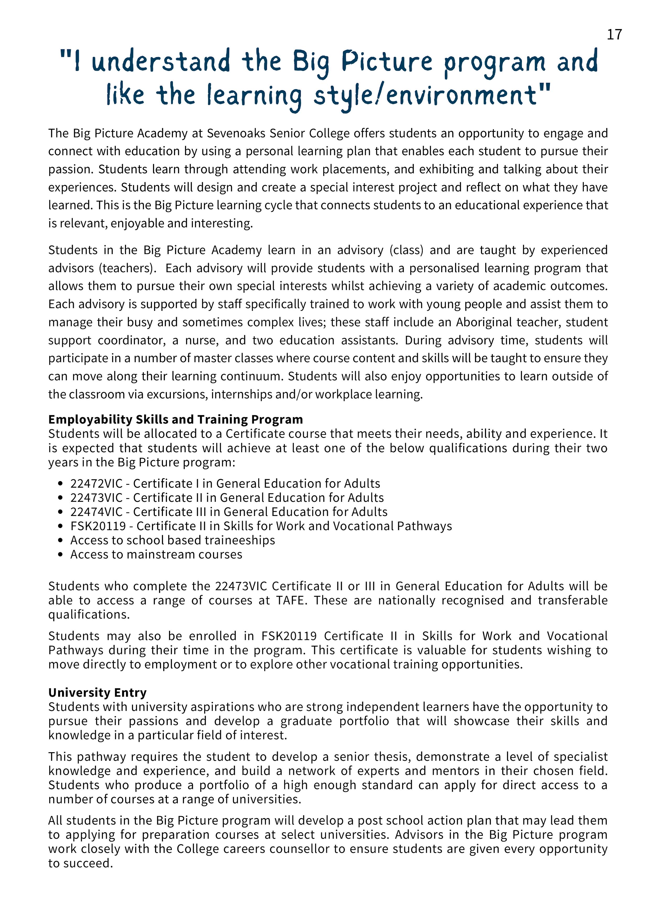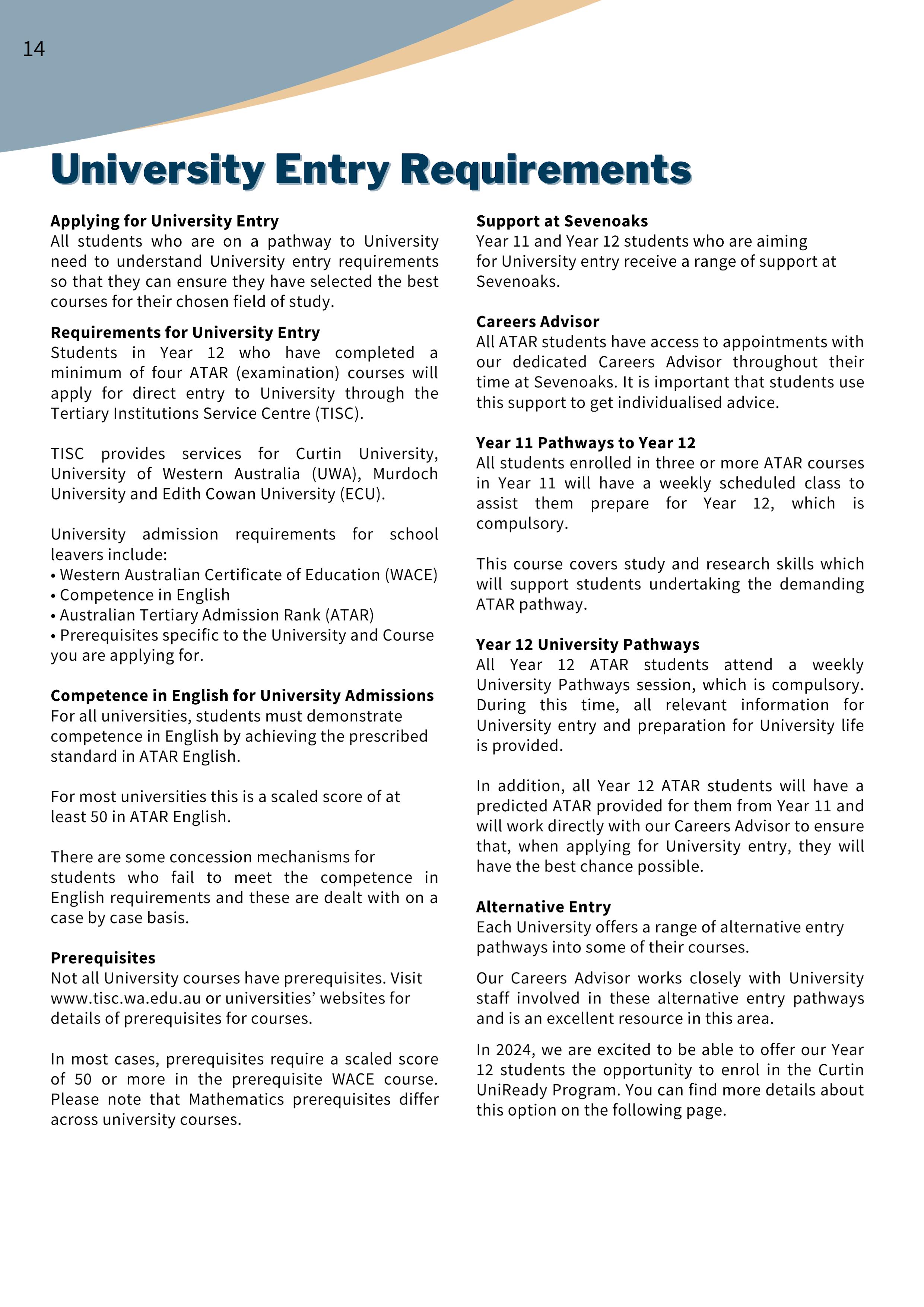 Sevenoaks Senior College 2024 Course Selection Handbook