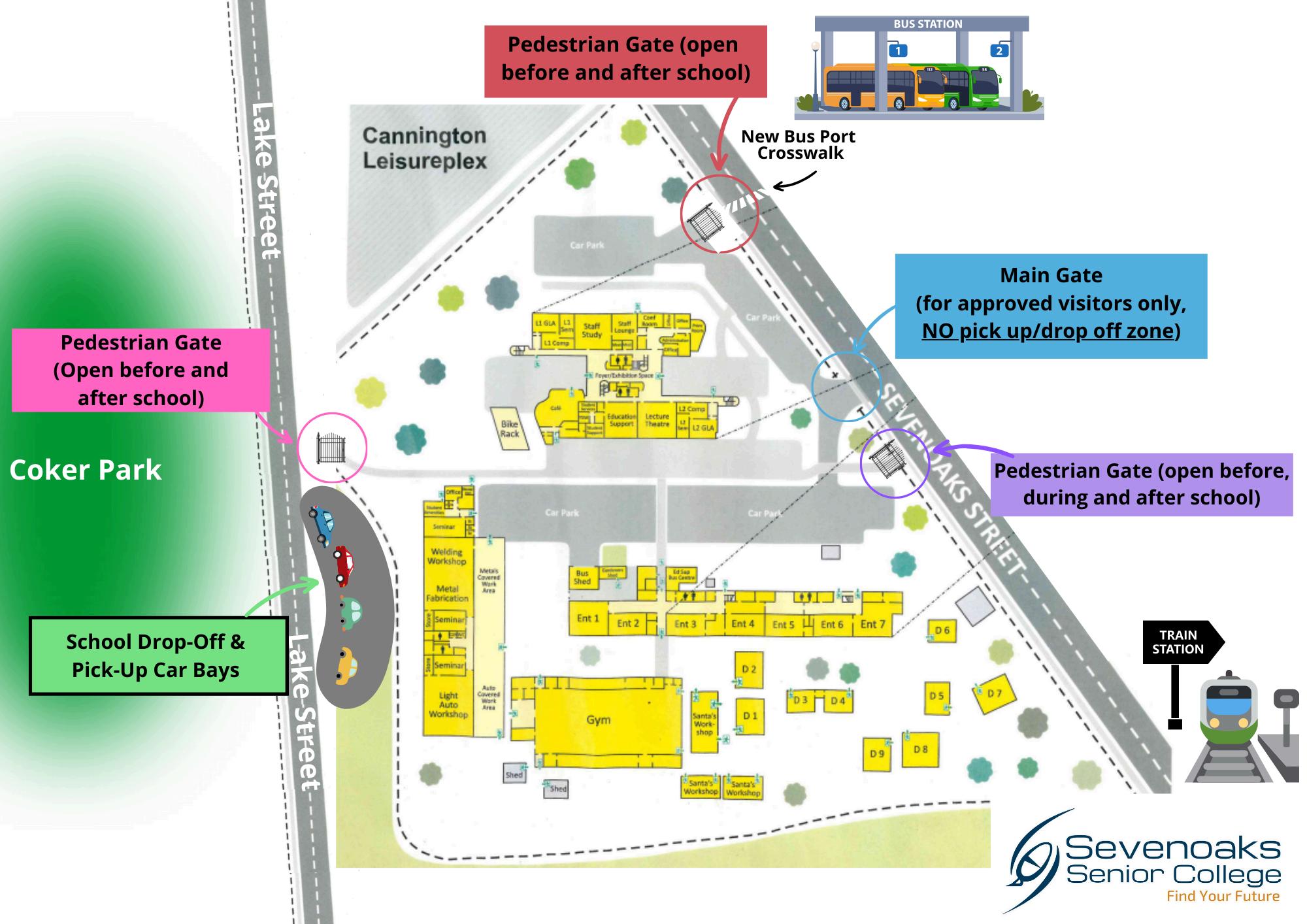 Thereisnoaccesstodropoff/pickup studentsbyvehiclefromSevenoaksStreet.