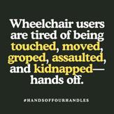 Freelance journalist Melissa Parker has launched a new social media campaign, #HandsOffOurHandles. Wheelchair users are tired of their mobility aid being manhandled, damaged - this has to stop.