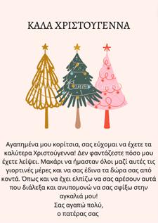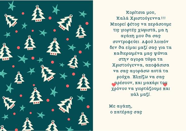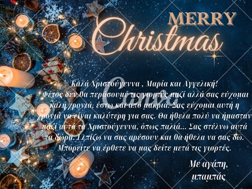 κάρτα του Ηλία για τις κόρες του αξιοποιώντας ψηφιακά το πρόγραμμα canva.