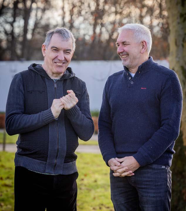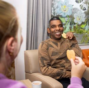 huizen, ook groepen waar bewoners bijna niet praten. Maar daar zou Vincent niet op z’n plek zijn. Frank: “Begrijp ons niet verkeerd, het gaat niet om het niveau, of om beter of slechter. Maar Vincent is een gezelligheidsdier. Hij verwacht interactie. Zelf praat hij nu de hele dag door.”