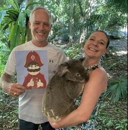 Tom Wesley, The Admiral and Minda Wesley get up close and personal with a koala at the Lone Pine Koala Sanctuary outside of Brisbane, Australia.