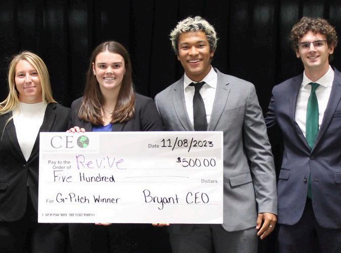 Congrats to KJ Lloyd, who was part of a team that won a simulated business competition called G-Pitch at Bryant University. Their company was based out of Singapore and recycled electric vehicle batteries to create a more sustainable battery replacement process. They competed against 80 teams that made up around half of the 2027 class at Bryant.