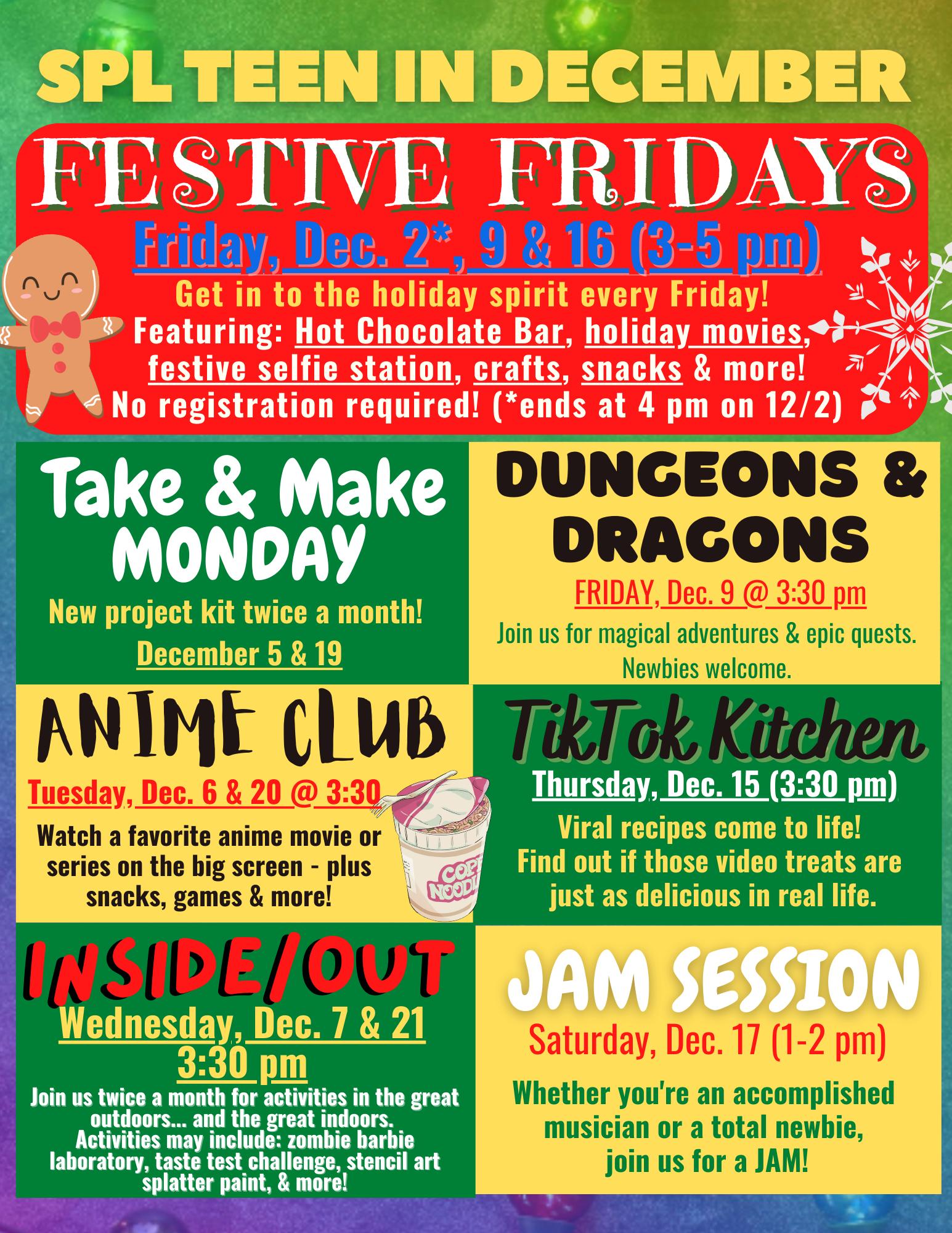 Sat | Dec 17 | starting at 9am Stop by the Children’s Department to pick up a winter themed Craft To Go Kit! Supplies and instructions are included. These kits are geared for children preschool to 2nd Grade. Available while supplies last.