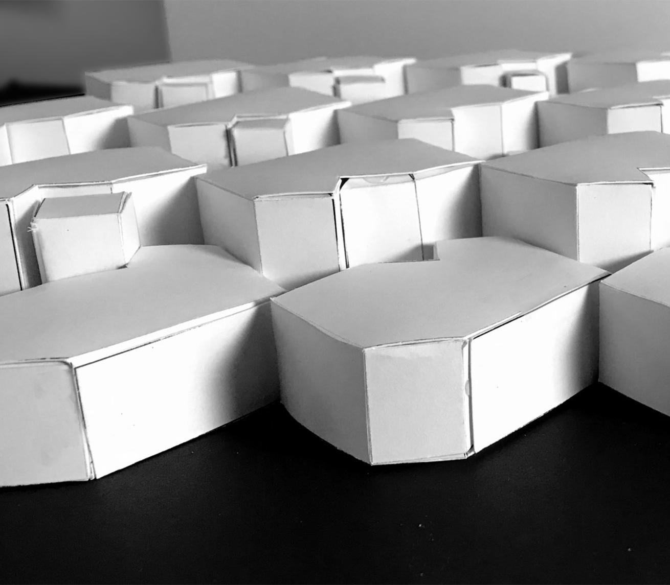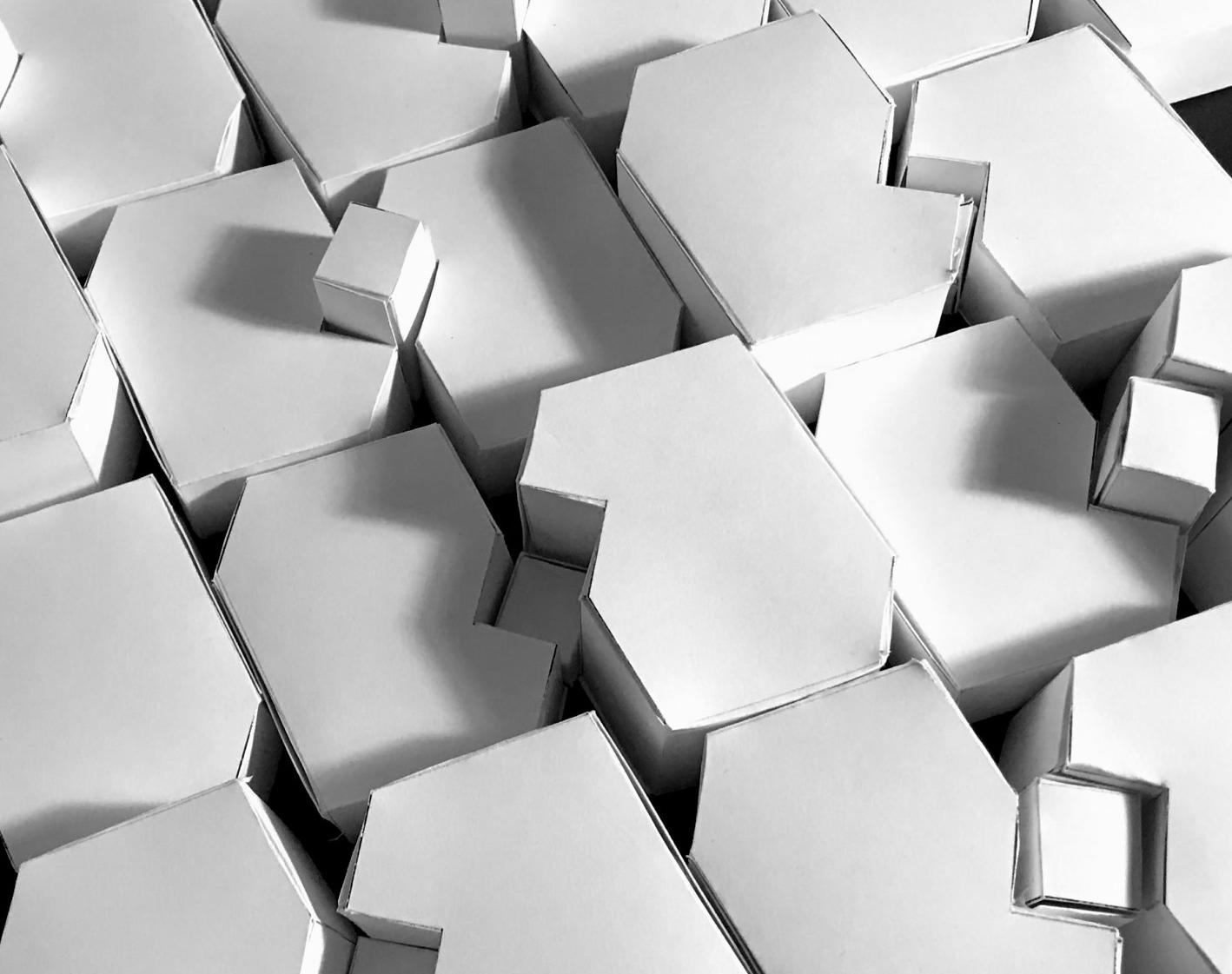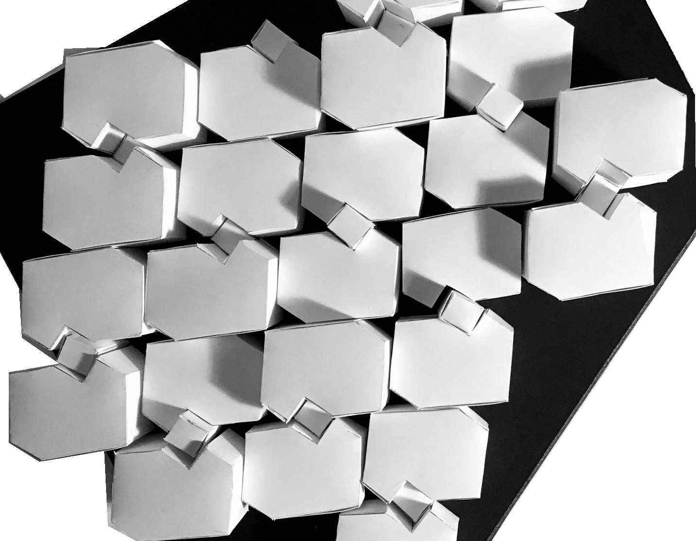 Forms were hand cut and assembled using adhesive dots and tape. The random arrangement of high/low is imntentional to show variation.