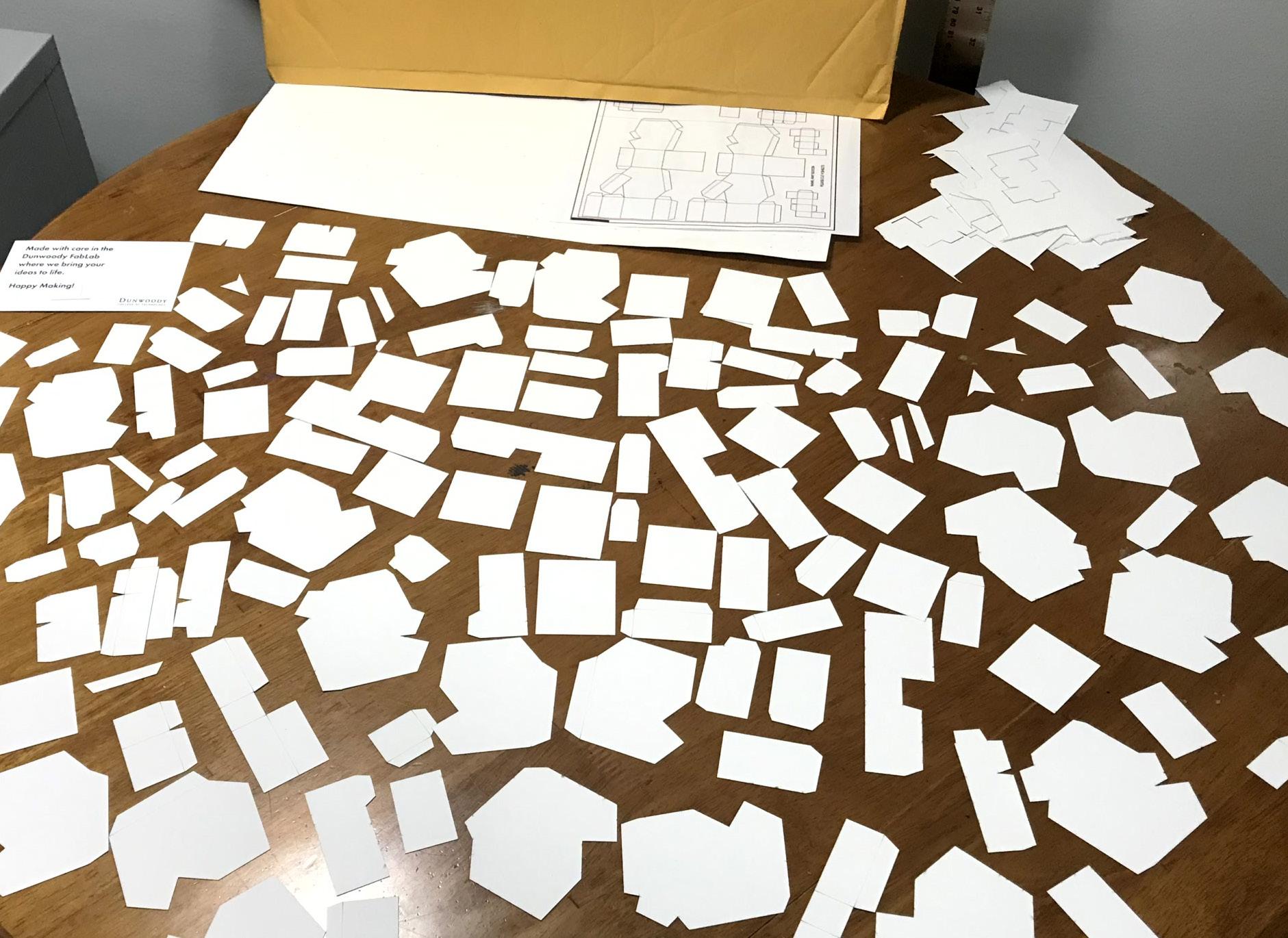 The envelope from the Dunwoody Fabrication lab contained pieces of the forms broken up into separate planes. Some pieces were less than 1/8” w.