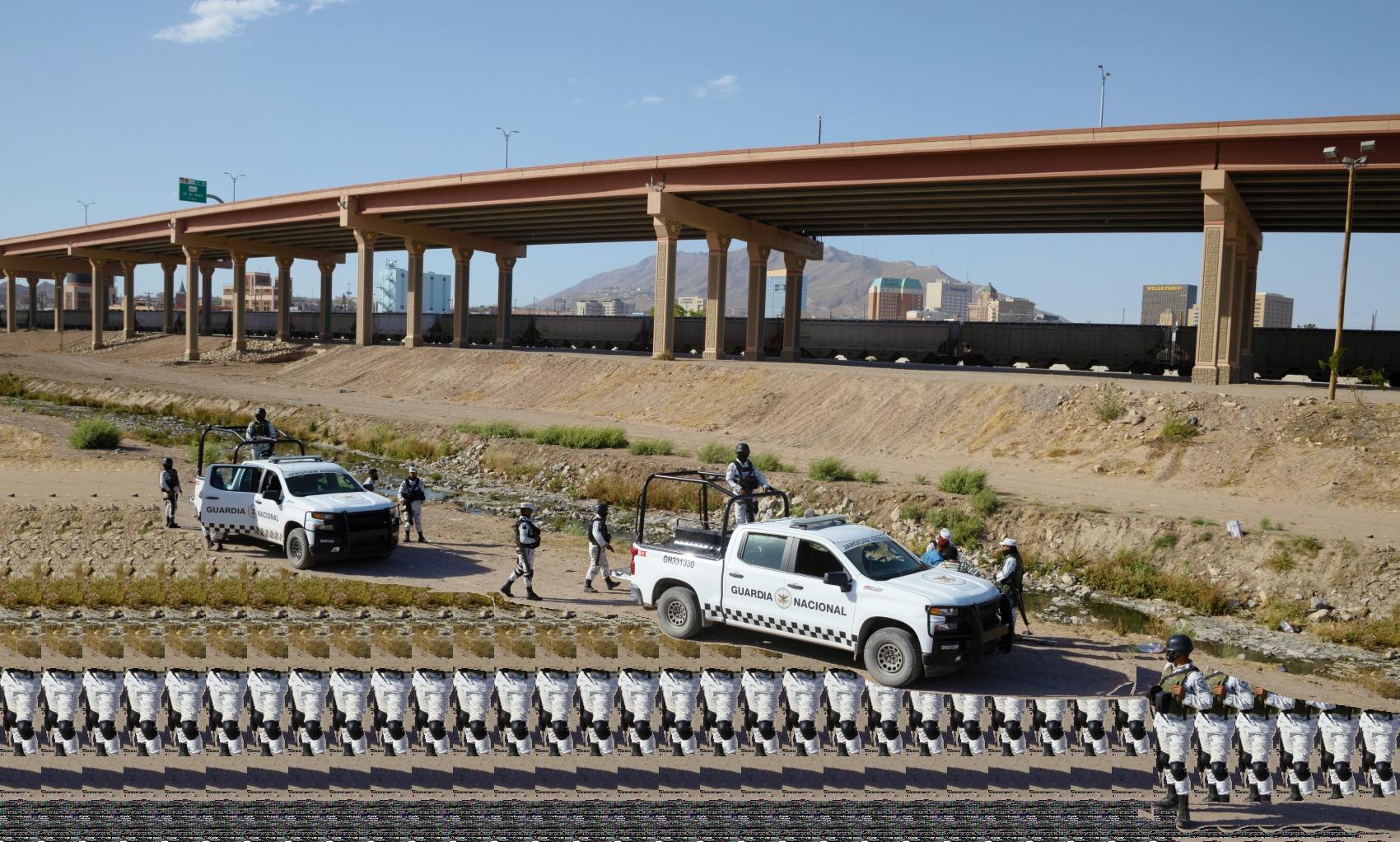 Matamoros (800 millas aproximadamente) la Guardia Nacional asentada en territorio texano y la Policía Estatal esperan alineadas y en posición de alerta, a un costado del río Grande, en El Paso y, miembros armados del Ejército Mexicano están formados en algunas partes del otro lado, en Ciudad Juárez.