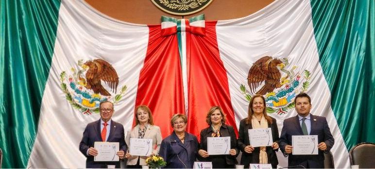 Las senadoras Beatriz Paredes Rangel y Xóchitl Gálvez; la diputada Margarita Zavala; el senador Heriberto Galindo Quiñones; la diputada Rosa María González Azcárraga; el presidente de la CONOFAM, (Coordinadora Nacional de Oficinas Estatales de Atención a Migran-