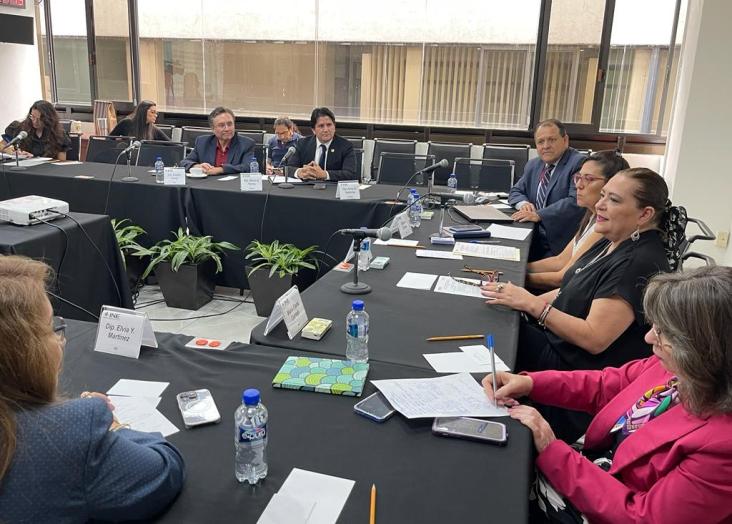 Por Dr. Emilio Coral García * Diputados Federales Migrantes junto a la Comisión del Voto de las y los Mexicanos Residentes en el Extranjero del Instituto Nacional Electoral (INE) trabajan para facilitar la participación de los migrantes mexicanos, rumbo al proceso electoral del 2024. (Der. a izq.) Lic. María Elena Cornejo, encargada de la Sría. Ejecutiva del INE; Dip. Ana Valenzuela Sánchez; Dip. Jorge Ernesto Inzunza; Dip. Elvia Martínez Cosío; Lic. Guadalupe Taddei, Consejera Presidenta del INE; Mtra. Claudia Zavala, Consejera Electoral; Dip. Mario Alberto Torres; Ing. César Ledesma, Secretario Técnico de la Dirección Ejecutiva del Registro Federal de Electores; Dr. Emilio Coral, en representación de la Diputada Nora Oranday