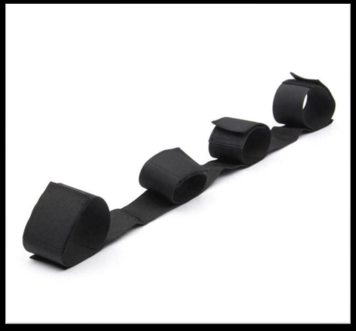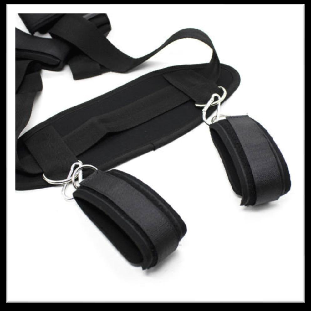 Cuenta con sujetadores de muñecas, tobillos y torso.