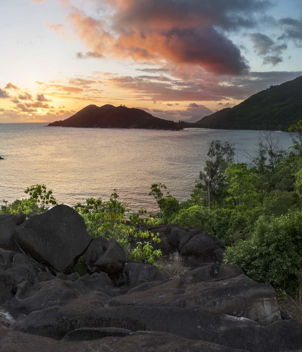 Con la sua sagoma imponente che si staglia maestosa contro il cielo cobalto, lo splendore di Mahé si prolunga dalle cime montuose avvolte nella nebbia, attraverso lussureggianti foreste vergini rimaste pressoché immutate nel corso del tempo, fino a un mare color zaffiro e a più di sessanta spiagge, molte delle quali figurano regolarmente nella top ten mondiale.