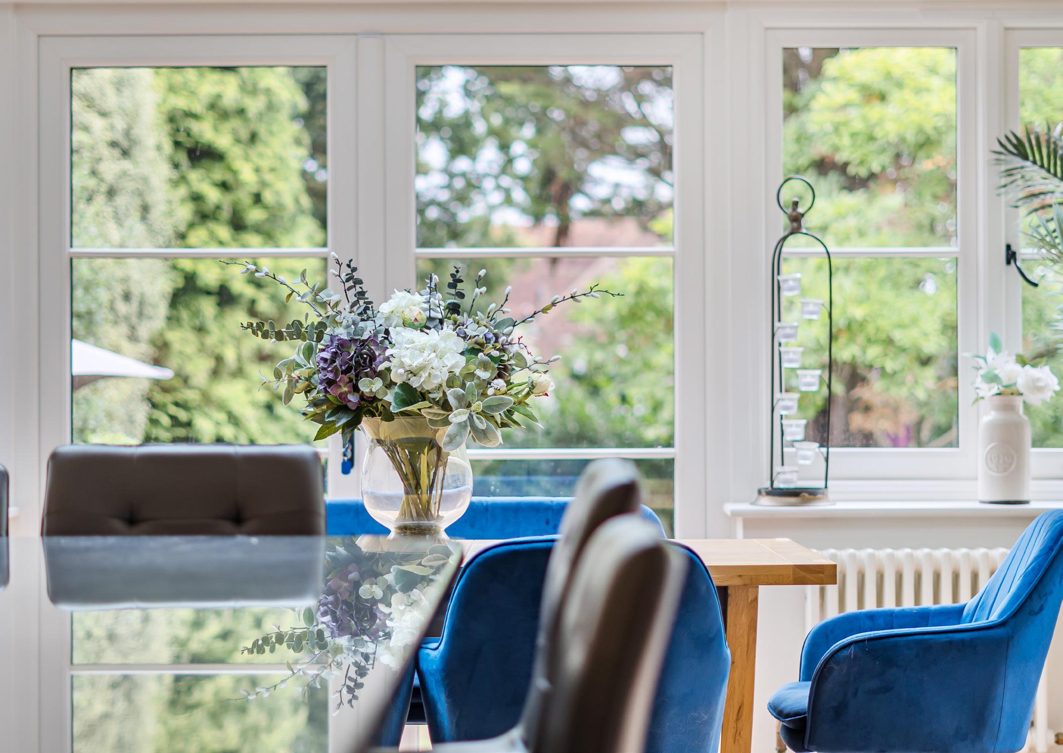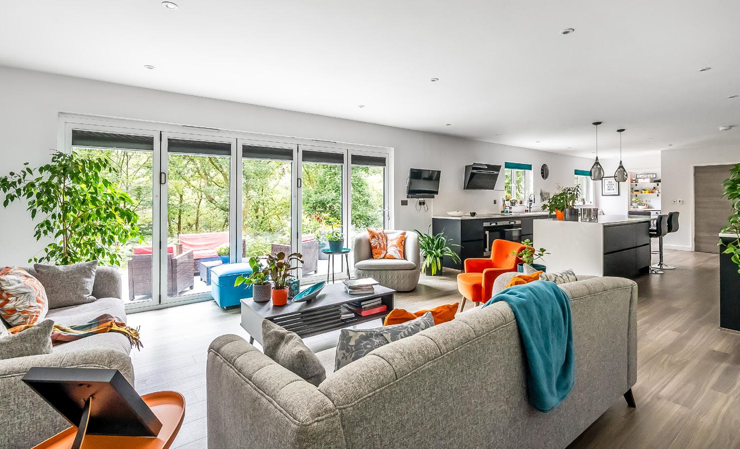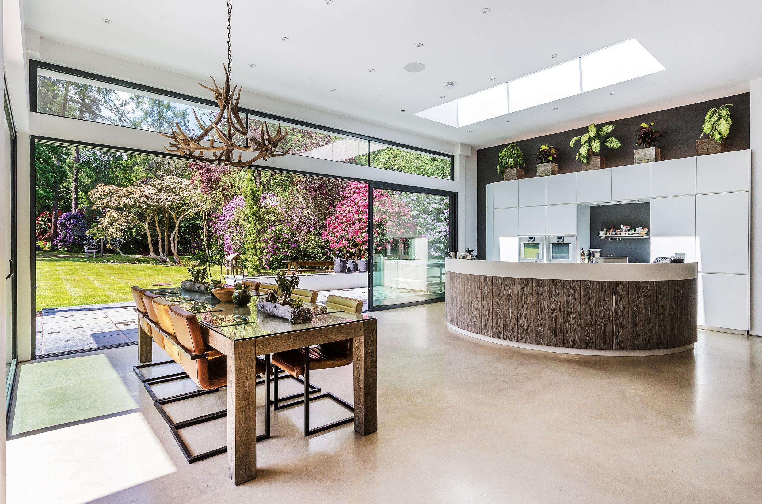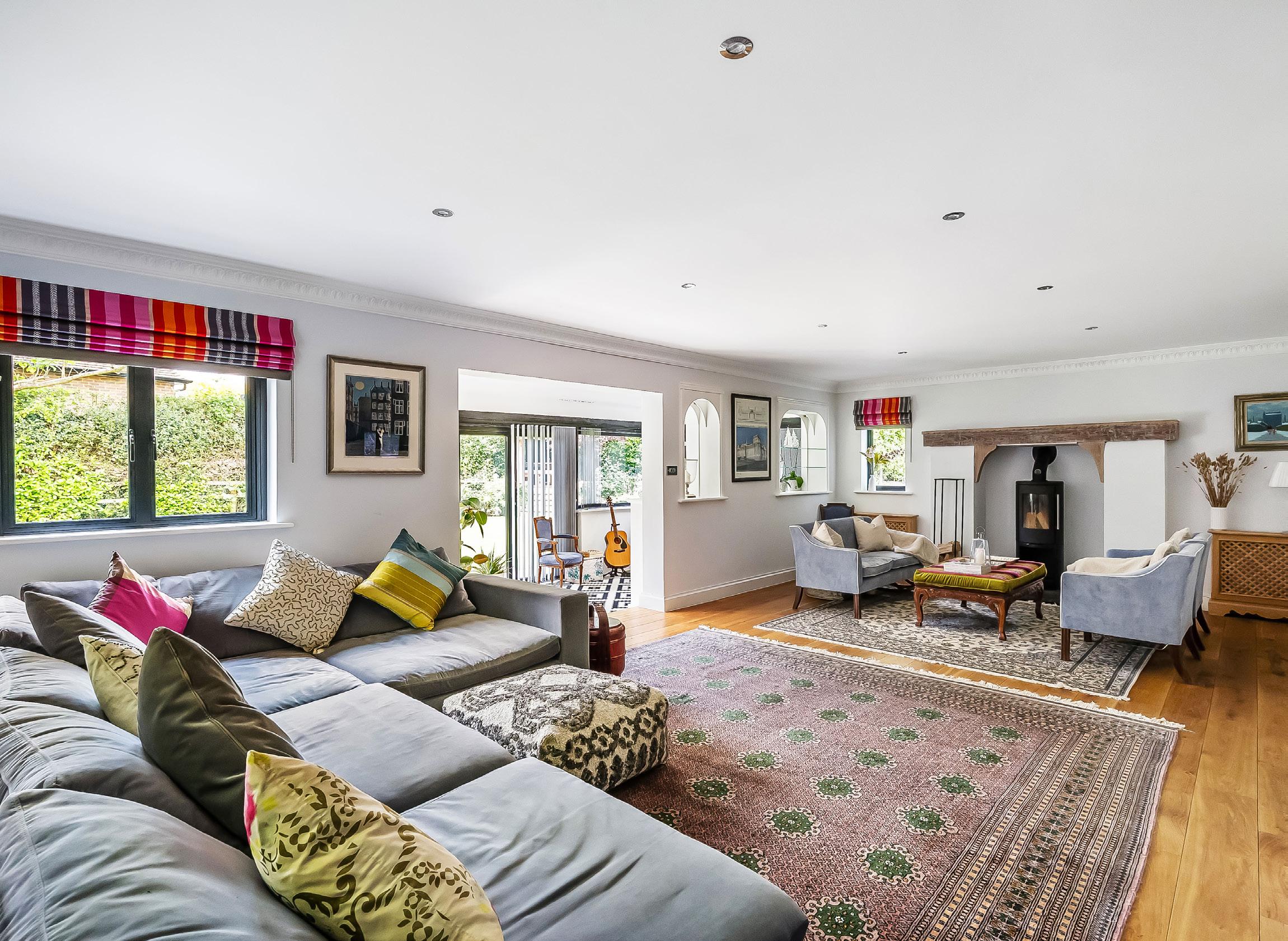 Seamlessly, the space flows into a spacious dining area that easily accommodates large family meals or lively dinner parties. Beyond, the relaxed living zone offers a welcoming environment with views across the garden, creating a calm and sociable atmosphere at the very centre of the home.