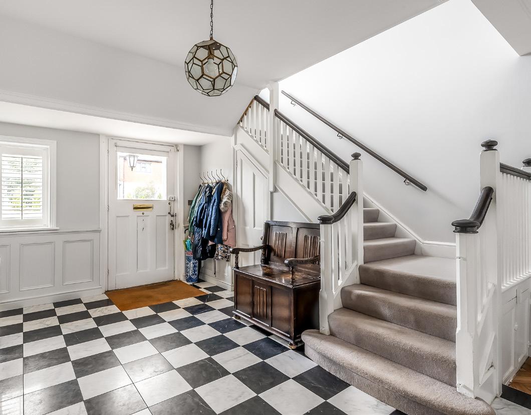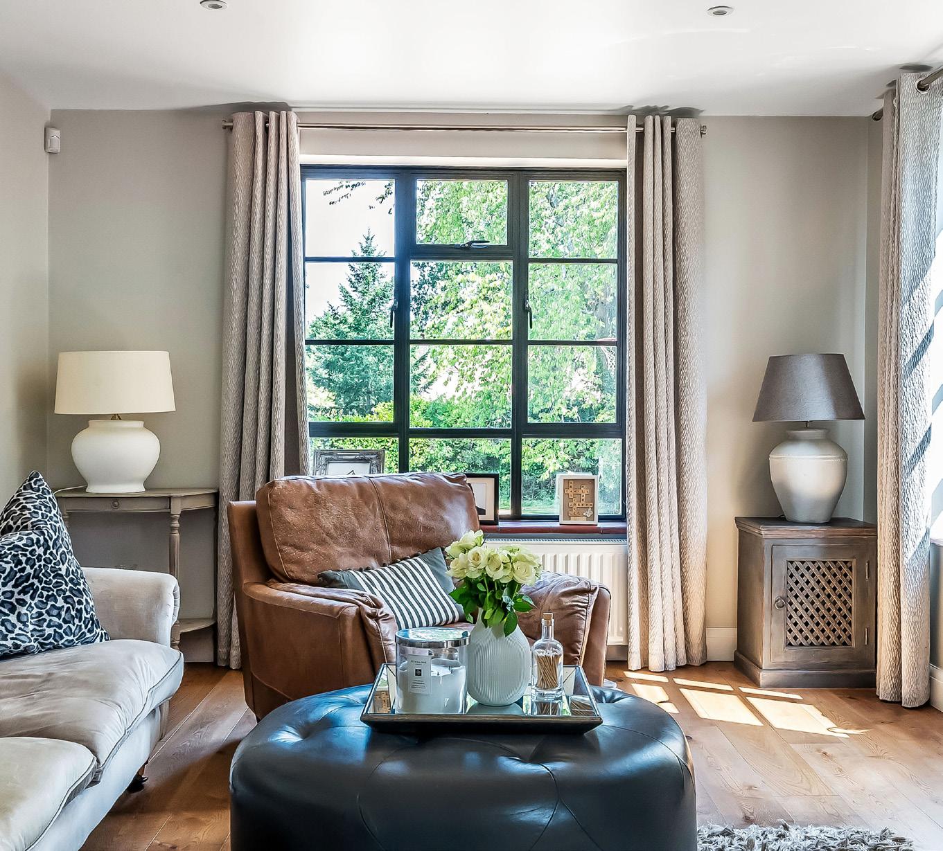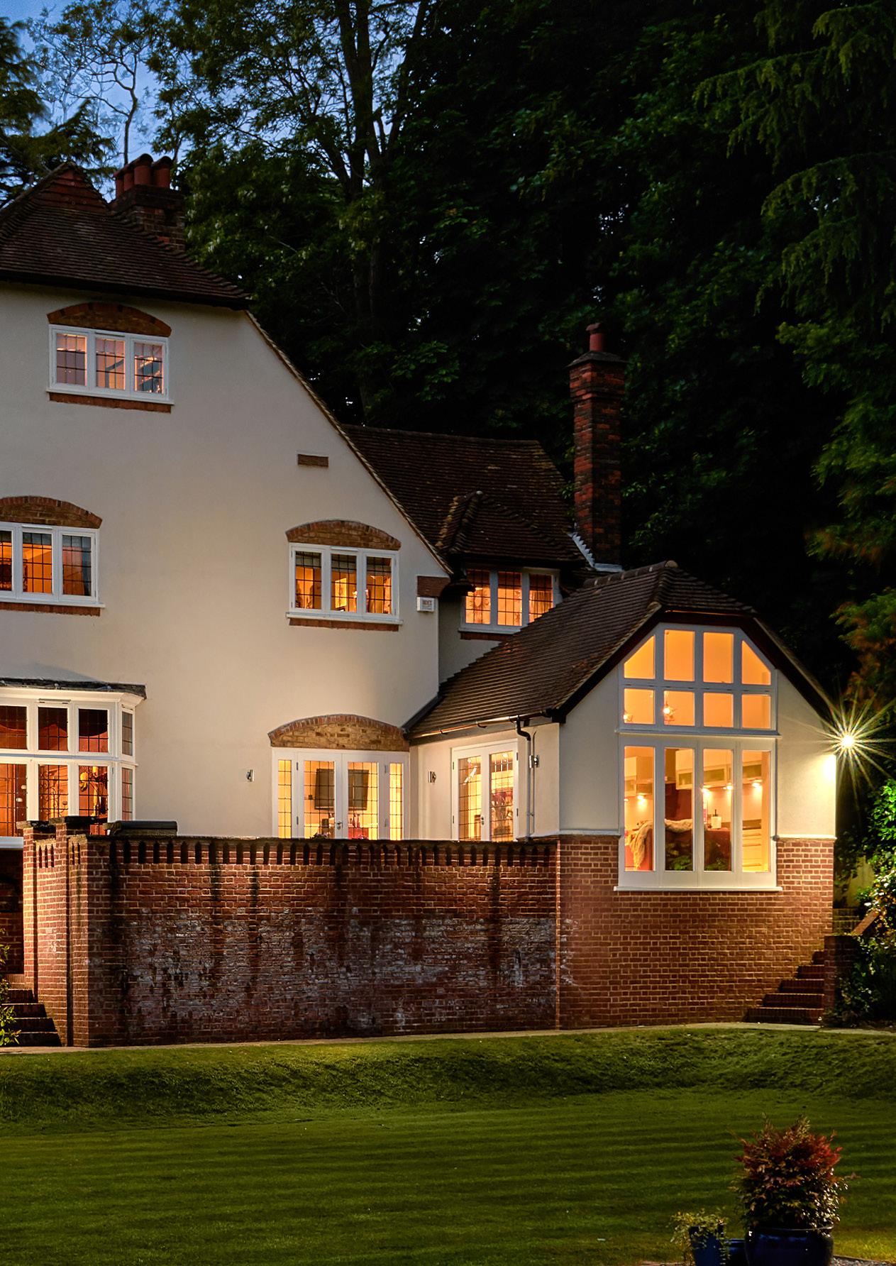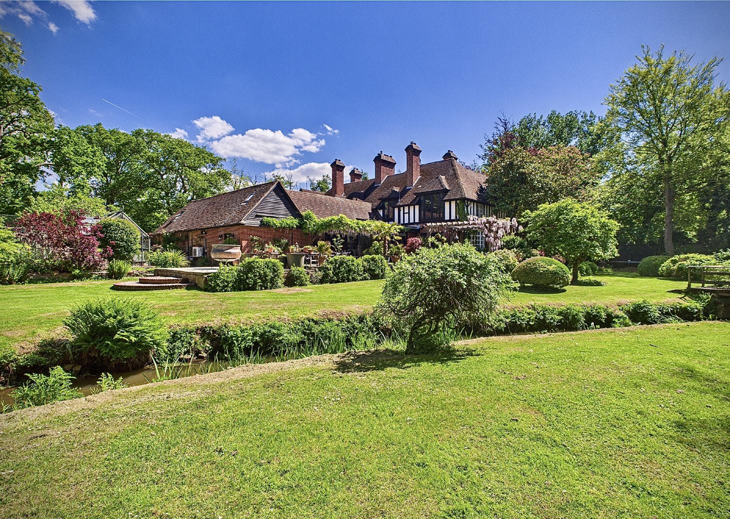 With its hung tiles, statuesque chimney stacks and leaded windows, a refined double-fronted façade leads into the central entrance hall. Original features such as exposed beams combine with extensive glazing and contemporary design to generate a sense of elegance and understated luxury.