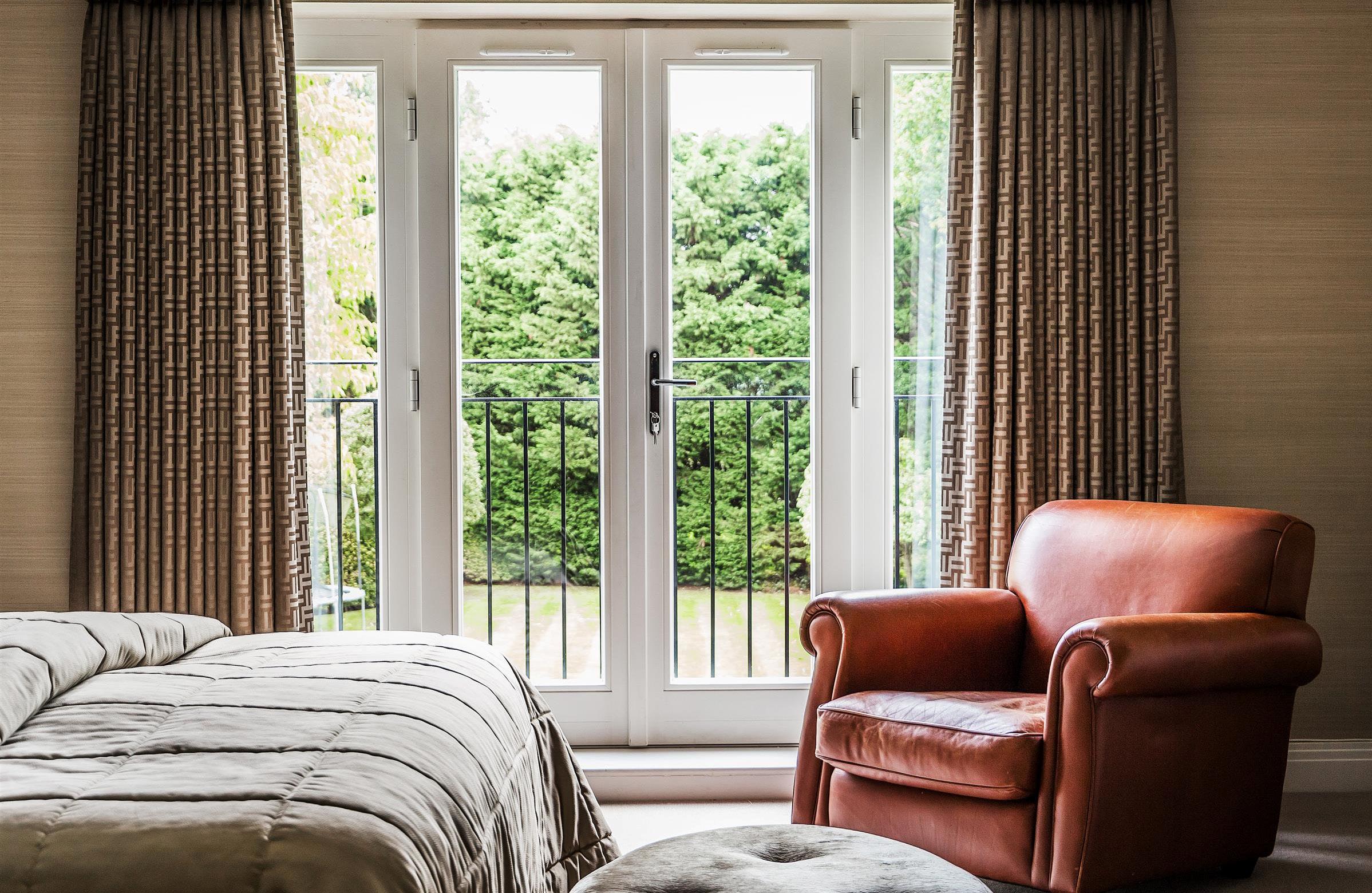 Ascending to the first floor, four generously proportioned double bedrooms await, each thoughtfully designed to provide space, light, and comfort. The principal suite is a true sanctuary, complete with a lavish en-suite bathroom featuring high-end fixtures and finishes, alongside an impressive walk-in dressing room. A second suite is equally well appointed, benefitting from its own ensuite shower room and dressing area. Two additional double bedrooms, each with built-in wardrobes, also enjoy en-suites, and all boast delightful views over either the landscaped gardens or the surrounding woodland. Bathrooms are fitted with Villeroy & Boch sanitaryware, underlining the property’s unwavering commitment to quality and design.