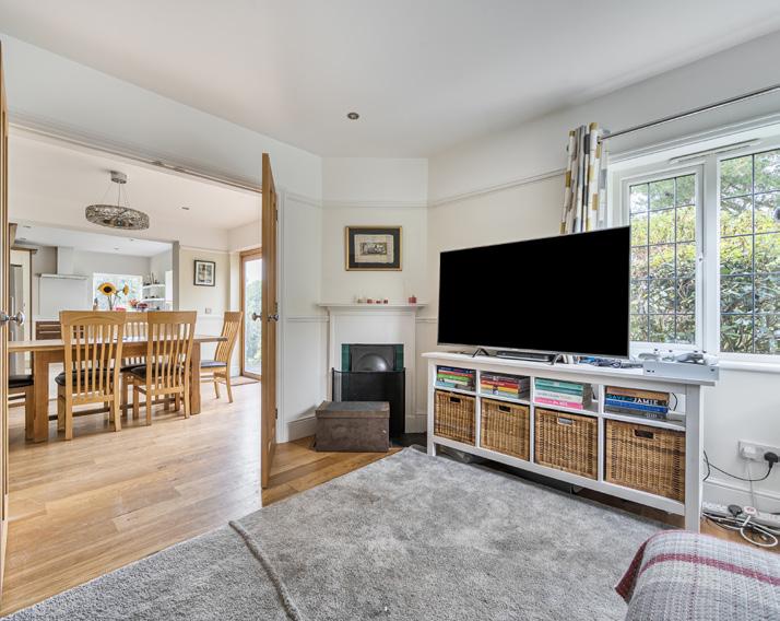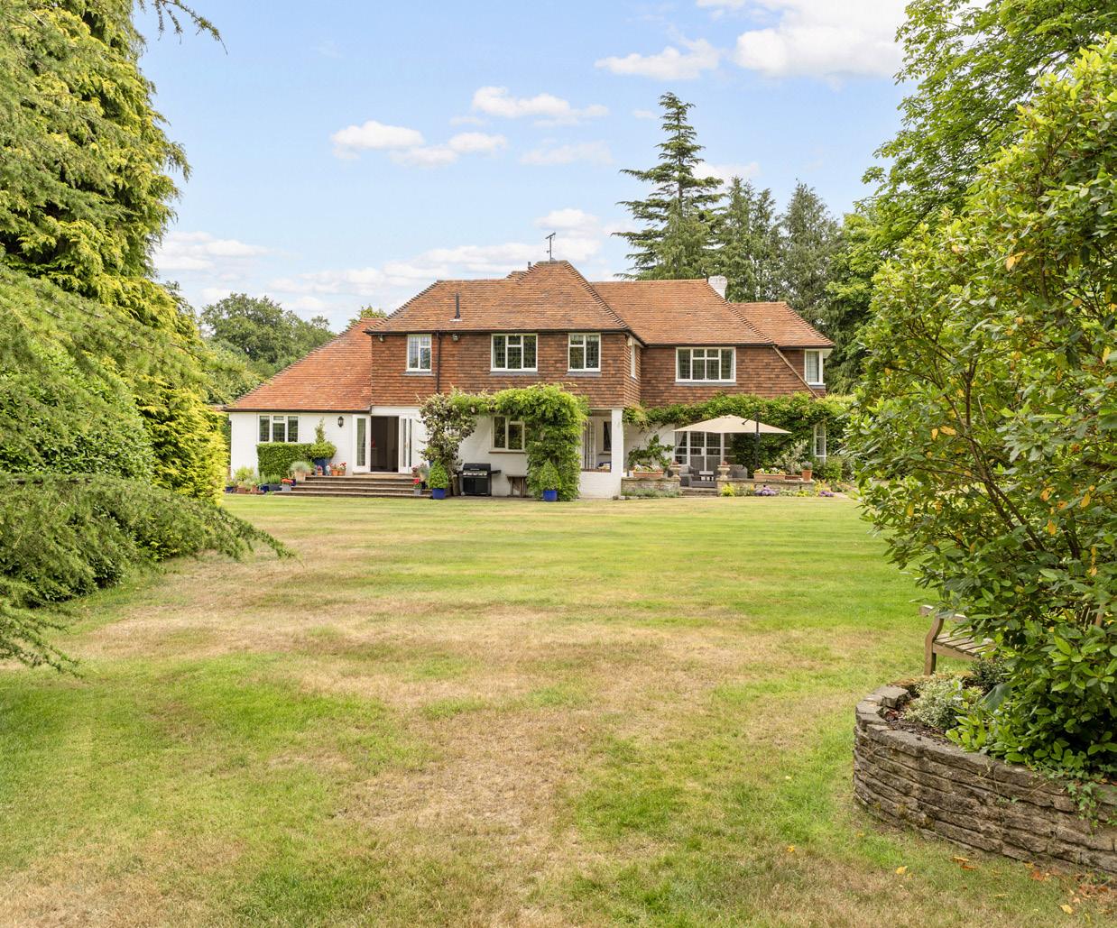 This beautifully presented and characterful 1930s detached family home offers five well-proportioned bedrooms and an enviable position in the highly sought-after setting of Marley Common, within the South Downs National Park. Surrounded by paddocks, woodland, and farreaching open countryside, the property combines period charm with modern family living, all within an idyllic semi-rural location. From the moment you approach, the home makes a lasting impression. A sweeping in-and-out shingle driveway sets the tone, offering a sense of arrival and providing ample parking, complemented by an electric vehicle charging point.