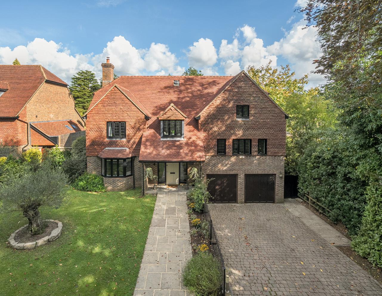 An outstanding five bedroom family home with heated pool on a prestigious private road 3,622 sq. ft. which had a complete rebuild in 2019. Set within a magnificent 0.31-acre south-facing plot, this beautifully transformed five bedroom detached home offers a stylish and versatile living space.