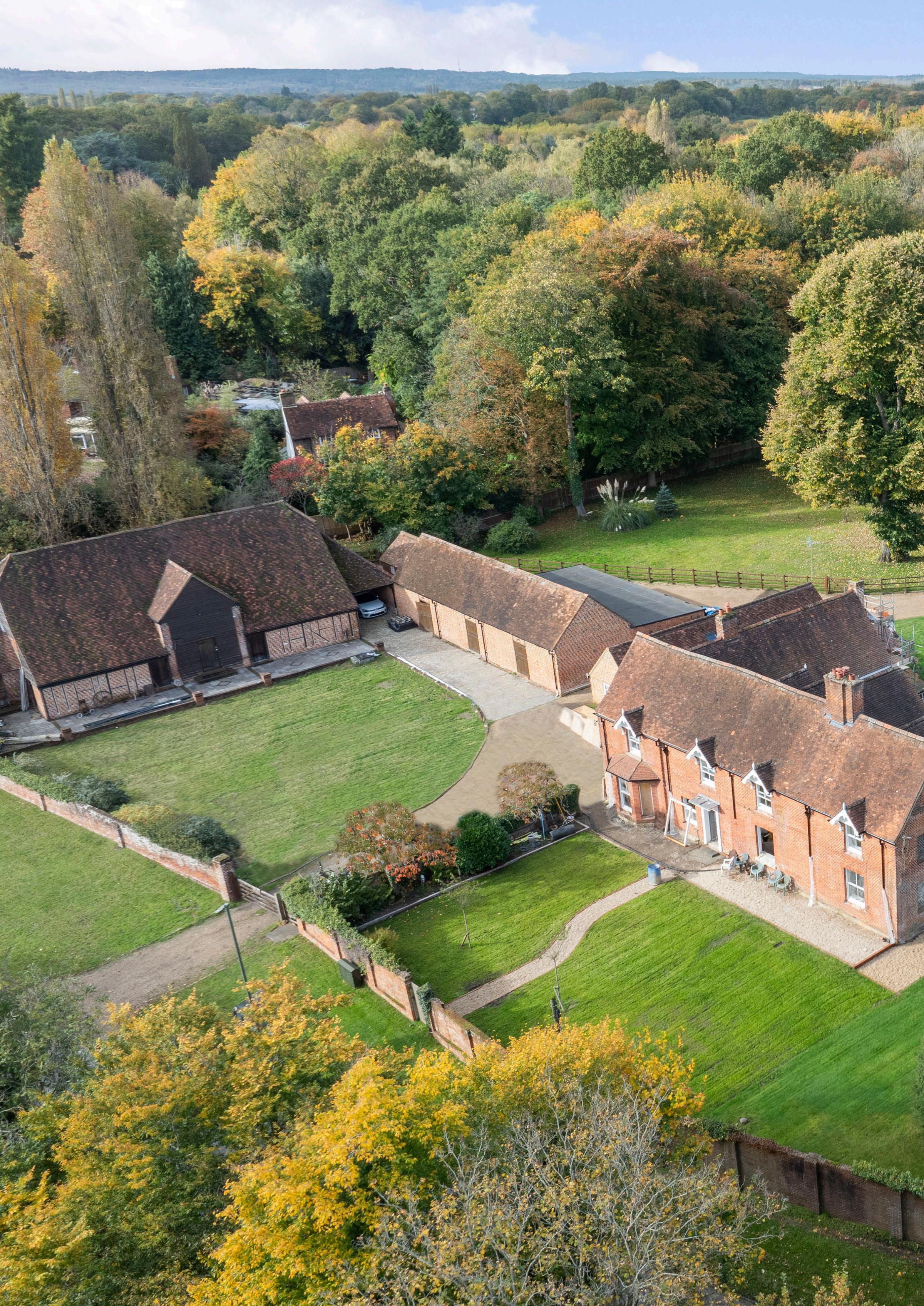 Behind a sweeping horseshoe driveway and vine covered facade, exposed timber beams stretch out overhead in the original entrance hall and dining room of this Tarrant built home leading the way to a beautifully created extended layout. With walls of wrap-around bi-fold doors opening onto impeccably landscaped large gardens of circa half an acre this exceptional period cottage perfectly balances contemporary design with the charm of its original features. Within a short stroll from the high street and mainline station, a spacious 3 storey layout unfolds across 4899 Sq ft. of light filled rooms proffering a superior lifestyle.