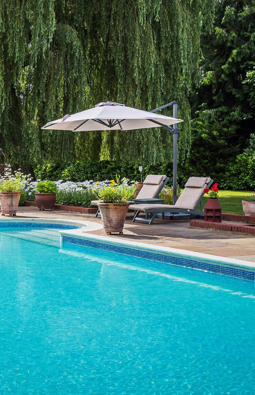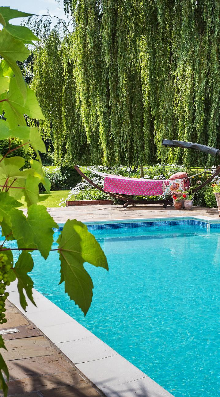 Inset with Acers that lend a vibrant dash of colour, the exquisite sun terrace gives you every excuse to enjoy al fresco entertaining on a grand scale or simply recline in the summer sun and admire your surroundings. Designed with the English climate in mind, a superb outdoor kitchen with a barbecue and pizza oven has the thoughtful finishing touch of a retractable roof and sits next to a majestic palm tree that lets you imagine you’ve been transported to the Mediterranean coast.
