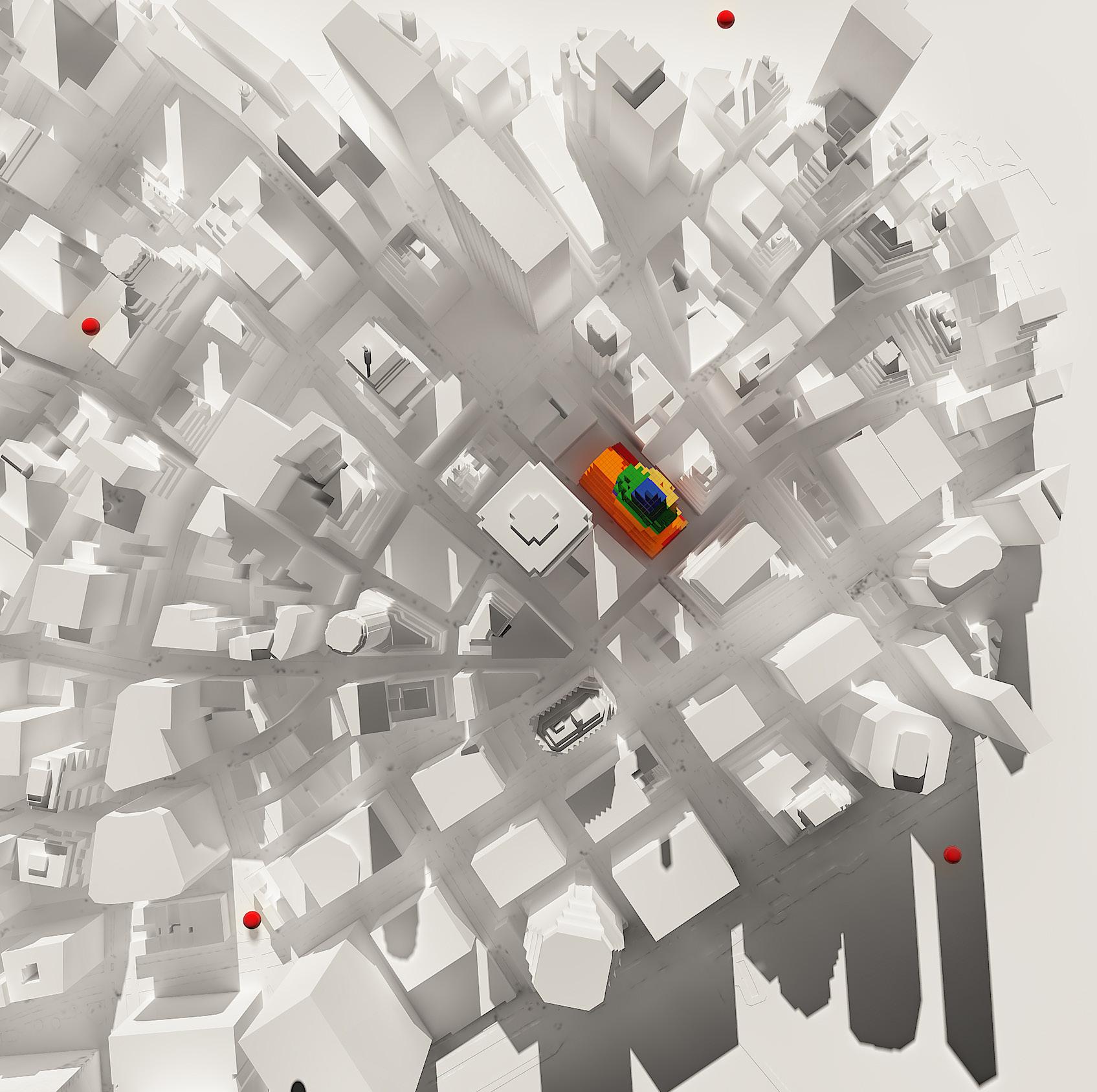 The water-activated mechanism enables the surfaces to move in the ‘z’ axis and creates an unfamiliarthreedimensional floor. This kinetic ground turns into both an installation and a landscape element for the city.