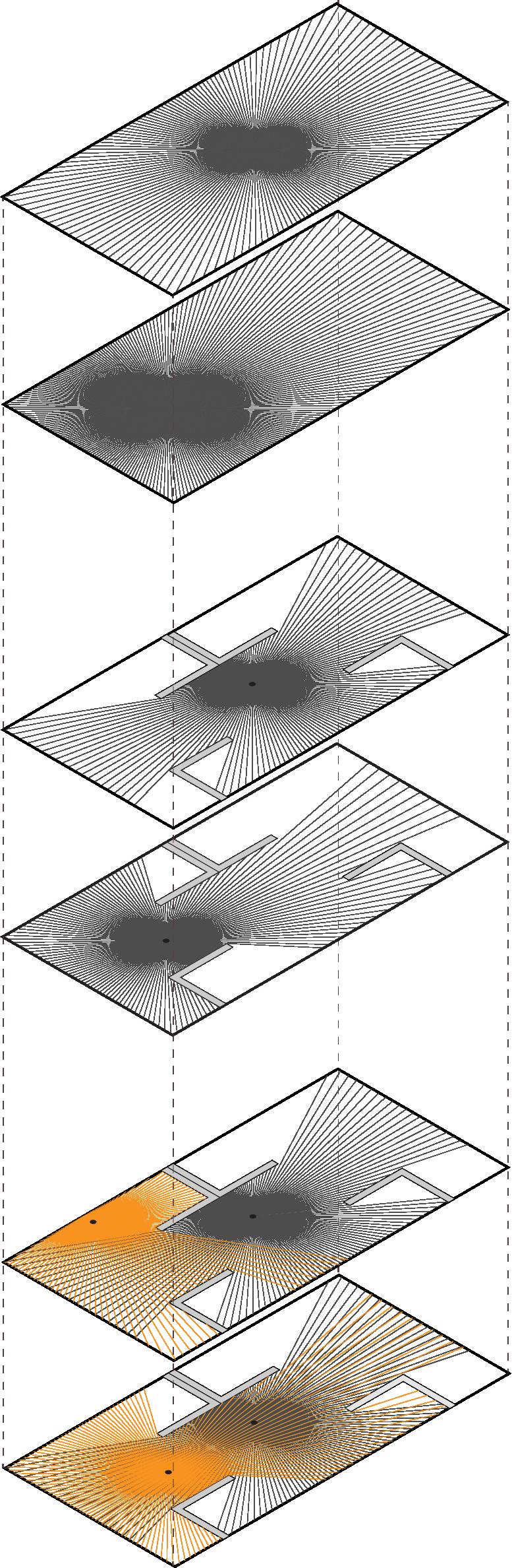 Visibility model develeoped for architectural geometries.Works with multiple observation points and defined obstacles.The outcomes comes from the voxeled geometry interaction.
