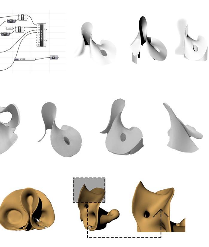 Thestarting point of the study was the concept of Allometry - the proportional change that comes with growth - as the evolution of the geometry of an architectural element over time. As an architectural element, a digital model was created in which the ground surface is actuated by water, an environmental input, and changes its shape. It is aimed that this kinetic floor will create a new geometry with the energy it receives from the movement of the users and thus become an urban installation.