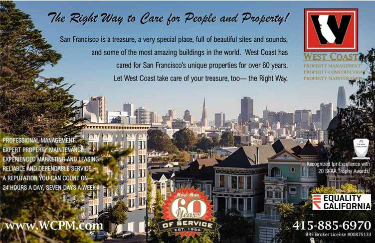 SF Apartment Magazine (ISSN 1539-8161) Periodicals Postage Paid at San Francisco, California and at additional mailing offices. POSTMASTER: Send address changes to the SF APARTMENT MAGAZINE, 265 Ivy Street, San Francisco, CA 94102.